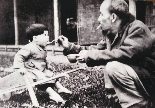 Bác Hồ tắm cho trẻ ở Việt Bắc