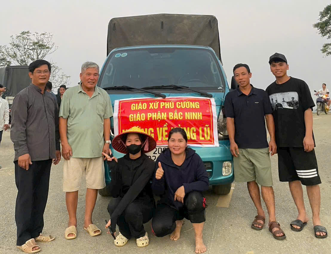Giáo xứ Phú Cường, xã Phú Thịnh hỗ trợ nhu yếu phẩm cho nhân dân vùng lũ tại xóm Tân Thành 1, phường Linh Sơn