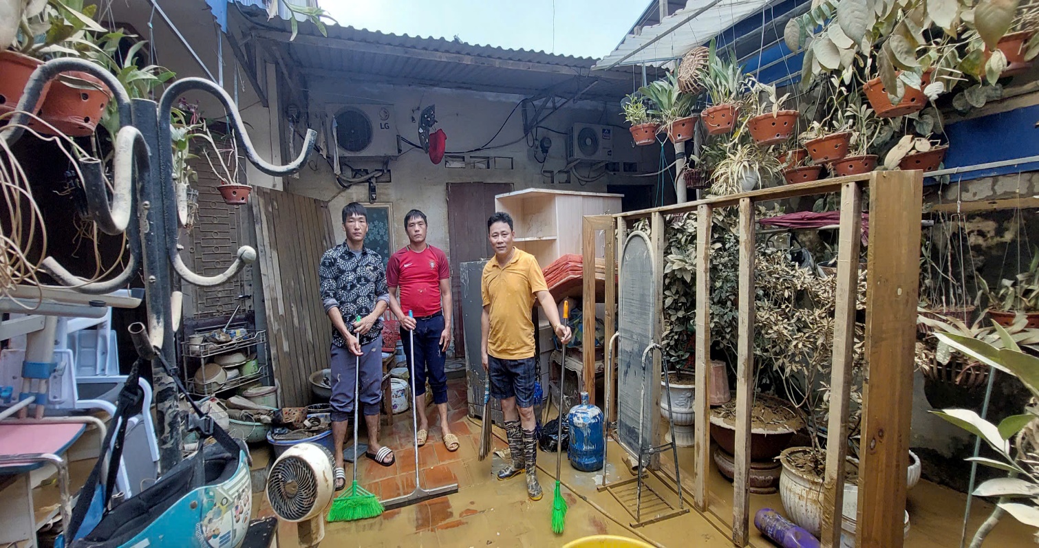 Tín đồ đạo Tin Lành tham gia hỗ trợ người dân dọn dẹp nhà cửa sau bão lũ tại phường Phan Đình Phùng