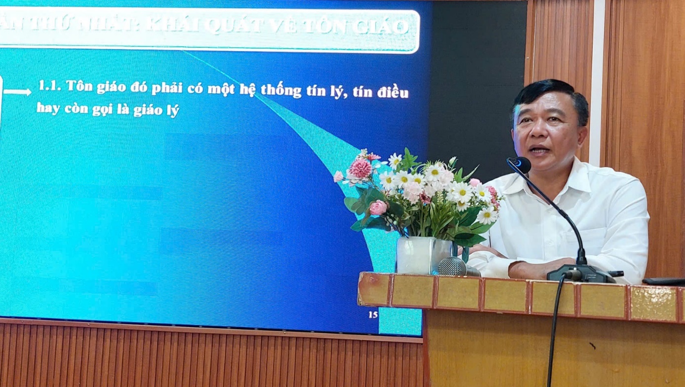 Dự và phát biểu khai mạc hội nghị, đồng chí Đinh Bộ Sơn - Phó Giám đốc Sở Dân tộc và Tôn giáo nhấn mạnh: công tác tuyên truyền, phổ biến pháp luật về tín ngưỡng, tôn giáo có ý nghĩa quan trọng nhằm nâng cao nhận thức, ý thức chấp hành pháp luật của đồng bào có đạo, góp phần giữ gìn an ninh trật tự và phát triển kinh tế - xã hội của địa phương.