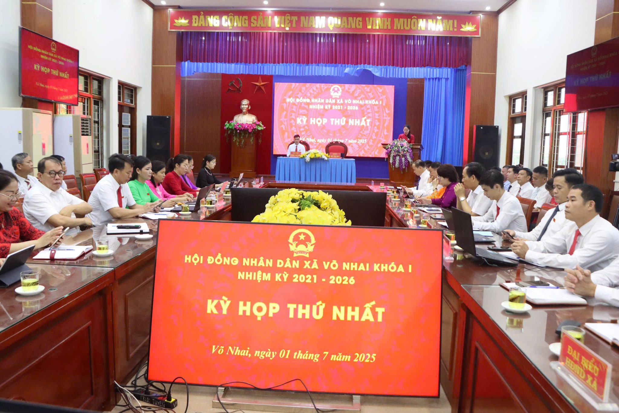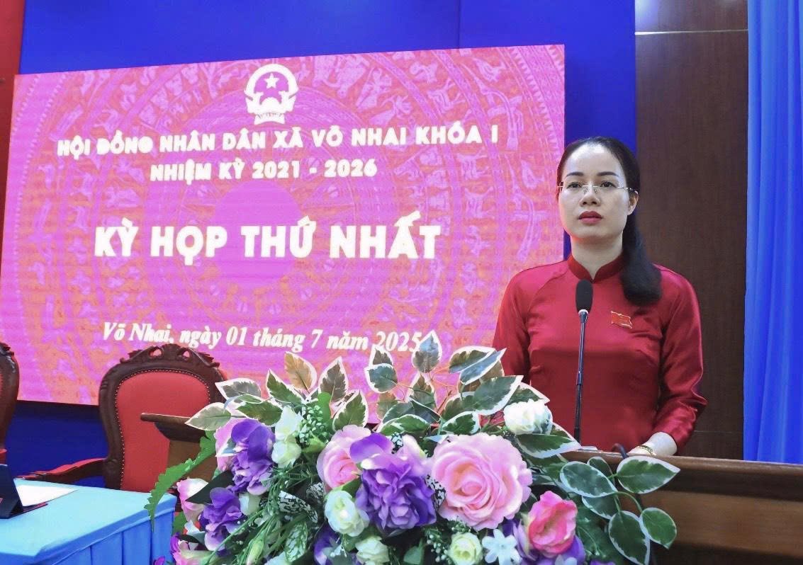 Tiếp đó, HĐND xã Võ Nhai khóa I, nhiệm kỳ 2021 – 2026 tổ chức Kỳ họp thứ nhất. Tại kỳ họp đã Công bố các Nghị quyết của Thường trực HĐND tỉnh về việc chỉ định nhân sự giữ các chức Chủ tịch, Phó Chủ tịch, Trưởng các Ban của Hội đồng nhân dân; Chủ tịch, Phó Chủ tịch UBND xã nhiệm kỳ 2021-2026. Công bố Nghị quyết của Thường trực HĐND xã về việc chỉ định Uỷ viên Ủy ban nhân dân xã. Nghị quyết phê chuẩn số lượng, danh sách Phó Trưởng ban hoạt động chuyên trách và Ủy viên là đại biểu HĐND hoạt động của các ban HĐND xã nhiệm kỳ 2021 - 2026. Tại kỳ họp, các đại biểu đã xem xét, thông qua các tờ trình của Thường trực HĐND xã về việc thành lập các Ban của Hội đồng nhân dân xã nhiệm kỳ 2021-2026. Tờ trình của Thường trực HĐND xã về Kỳ họp thường lệ của HĐND xã năm 2025. Tờ trình của UBND xã về việc thành lập các cơ quan chuyên môn và tổ chức hành chính thuộc Ủy ban nhân dân xã. Tờ trình của UBND xã về việc thành lập Trung tâm Dịch vụ tổng hợp xã Võ Nhai. Tại kỳ họp các đại biểu đã biểu quyết thông qua 4 nghị quyết quan trọng.