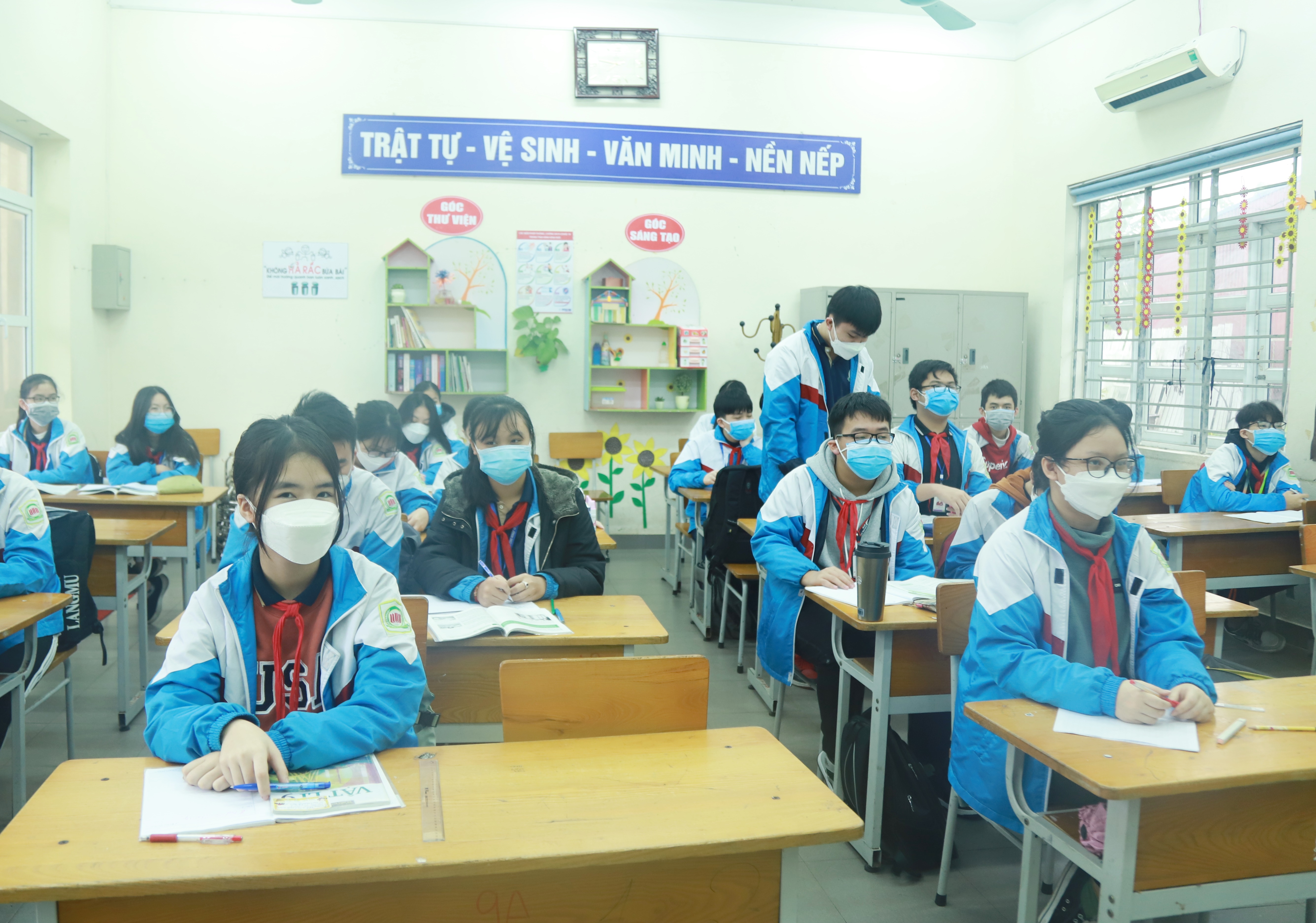 Được trở lại trường học trực tiếp là mong muốn không chỉ các thầy cô giáo mà là sự mong đợi của các bậc phụ huynh học sinh (Tiết học môn Ngữ Văn của học sinh lớp 9A2 trường TH & THCS 915 Gia Sàng)