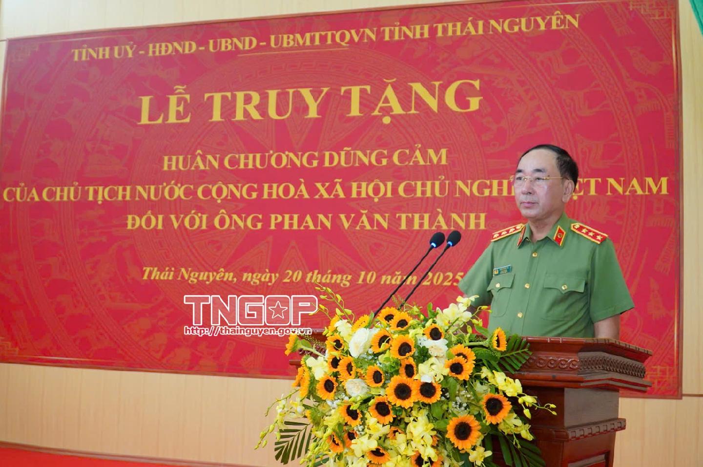 Ngày 20/10, tại Lễ truy tặng Huân chương Dũng cảm của Chủ tịch nước cho đồng chí Phan Văn Thành, Tổ trưởng Tổ bảo vệ an ninh trật tự xóm Xuân Hà 1 (xã Thành Công, tỉnh Thái Nguyên), đồng chí Thượng tướng Trần Quốc Tỏ, Ủy viên BCH Trung ương Đảng, Thứ trưởng Bộ Công an đã có bài phát biểu quan trọng. Cổng Thông tin điện tử tỉnh đăng toàn văn bài phát biểu.