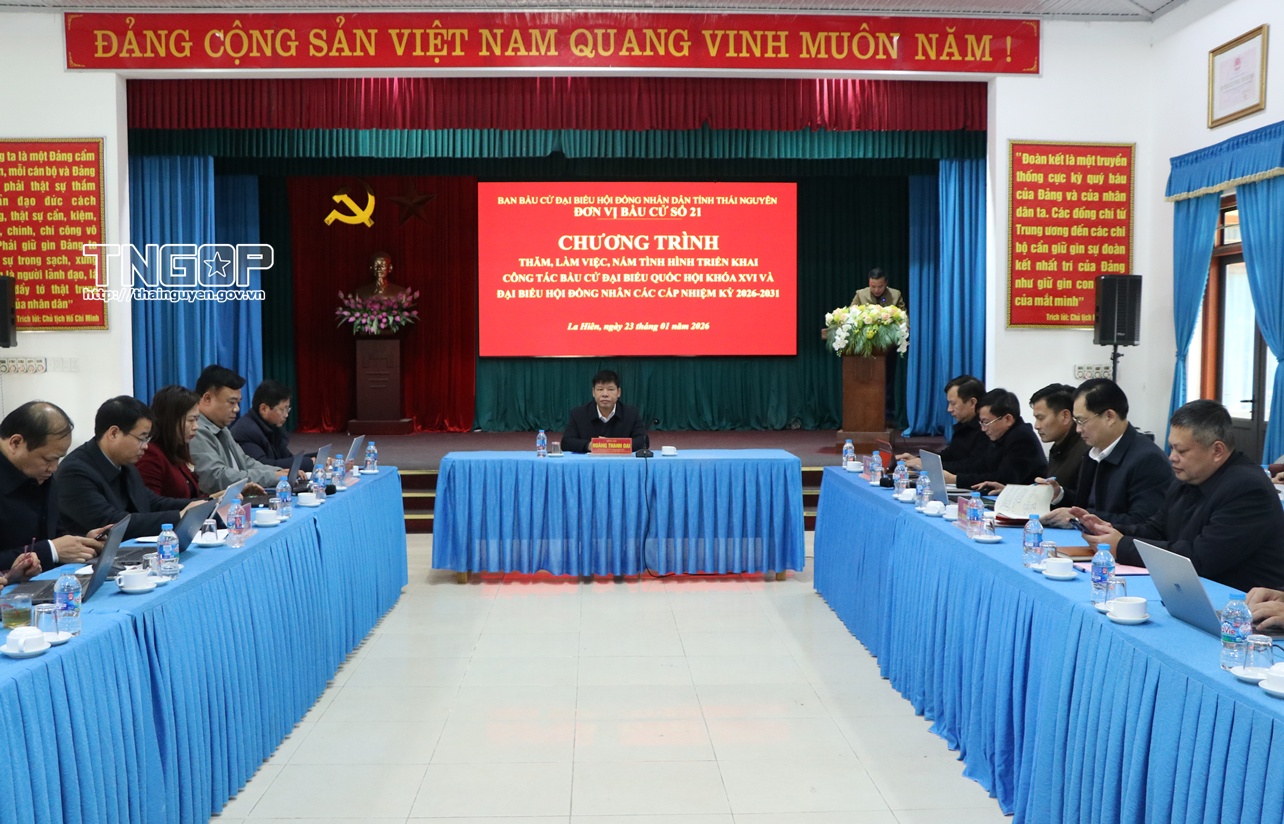 Sáng 14/1, Văn phòng UBND tỉnh tổ chức Hội nghị ban lãnh đạo mở rộng giới thiệu người ứng cử đại biểu HĐND tỉnh Thái Nguyên nhiệm kỳ 2026 - 2031.