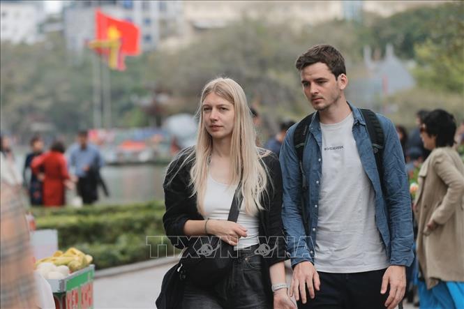 Du khách quốc tế đến Hà Nội dịp Tết nguyên đán Ất Tỵ 2025. Ảnh: Minh Quyết/TTXVN