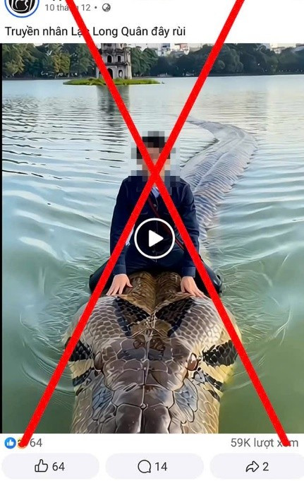 Qua công tác nắm tình hình trên không gian mạng, ngày 25/12/2025, Phòng An ninh mạng và phòng, chống tội phạm sử dụng công nghệ cao, Công an thành phố Hà Nội phát hiện một tài khoản facebook đăng tải video có tiêu đề “Truyền nhân Lạc Long Quân đây rùi”, trong đó có hình ảnh một người ngồi trên một con trăn khổng lồ bơi trên mặt hồ Hoàn Kiếm.