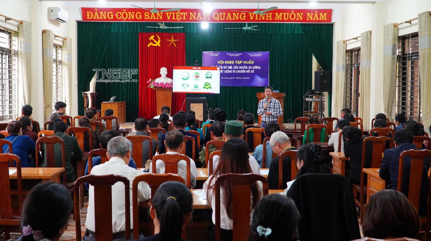 Sáng 4/4, tại UBND xã Tân Cương, TP. Thái Nguyên, Công ty TNHH Phát triển doanh nghiệp NTD phối hợp với Sở Khoa học và Công nghệ và UBND xã Tân Cương tổ chức Hội nghị tập huấn, bồi dưỡng kiến thức về sở hữu trí tuệ, tiêu chuẩn, đo lường chất lượng, chuyển đổi số cho các doanh nghiệp, hợp tác xã, hộ sản xuất, kinh doanh chè tham gia trong chuỗi cung ứng sản phẩm mang chỉ dẫn địa lý “Tân Cương”.
