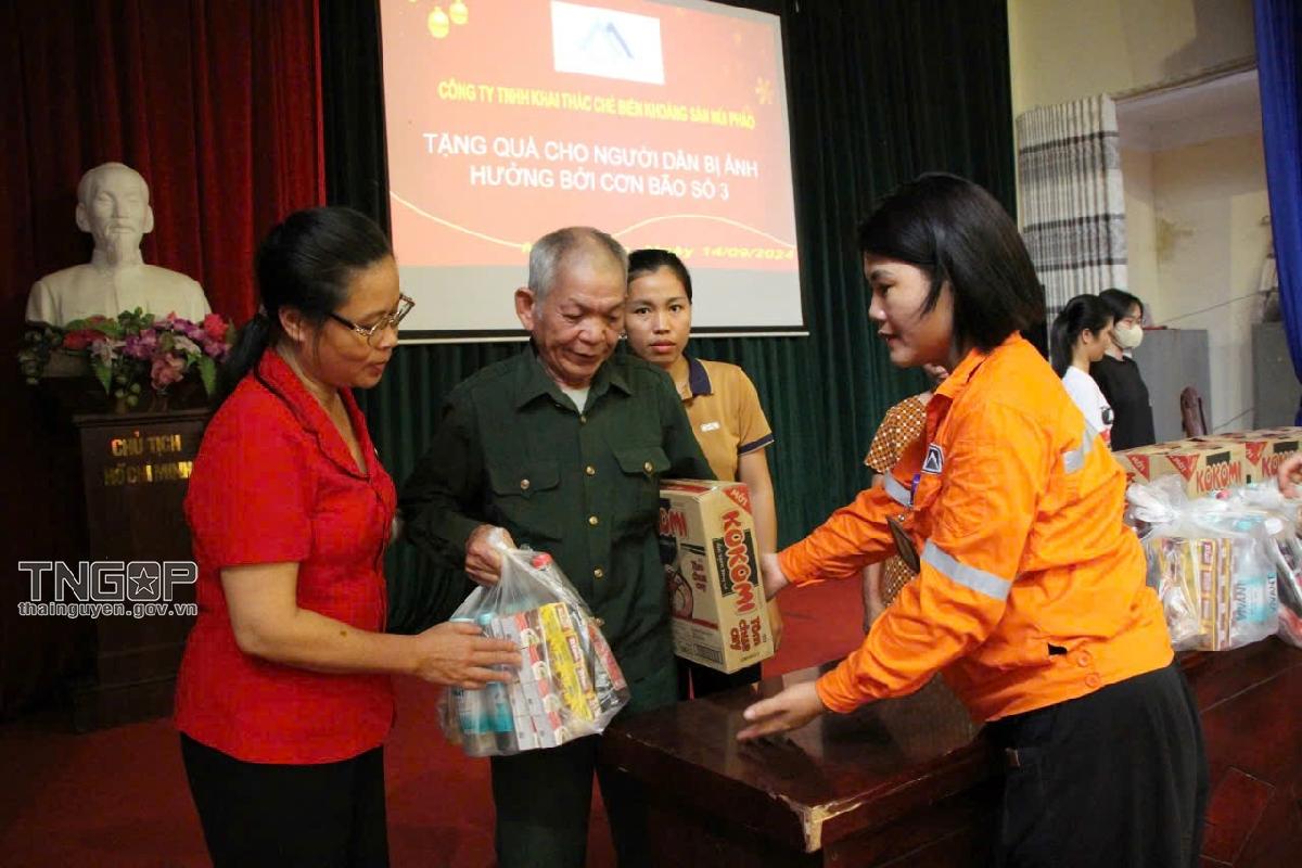 Sẻ chia với những mất mát của người dân do bão lũ, ngày 14/9, Công ty TNHH Khai thác Chế biến khoáng sản Núi Pháo (Công ty Núi Pháo) phối hợp cùng Ủy ban MTTQ, Hội Chữ thập đỏ huyện Đại Từ và chính quyền địa phương đã đến thăm hỏi, động viên, trao quà hỗ trợ cho các gia đình bị thiệt hại trên địa bàn huyện Đại Từ.