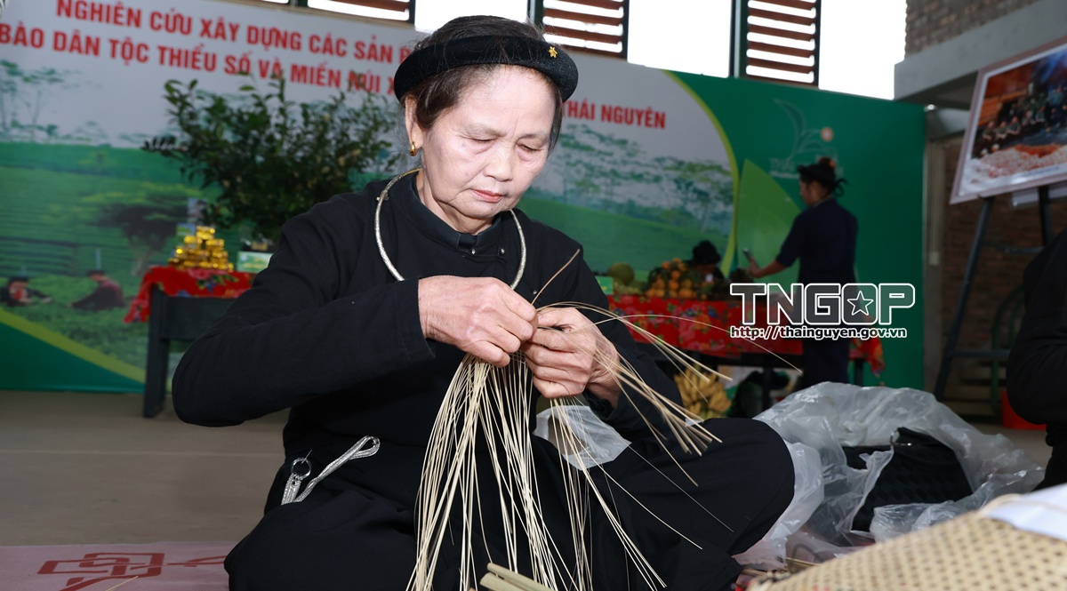 Người dân xã Phú Đình trình diễn đan nón Tày truyền thống tại một sự kiện văn hóa cấp tỉnh