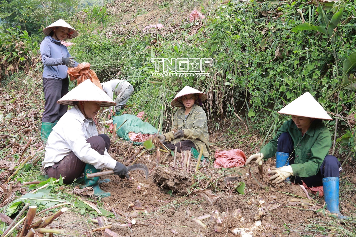 Các hộ dân thôn Nà Pán thu hoạch dong riềng