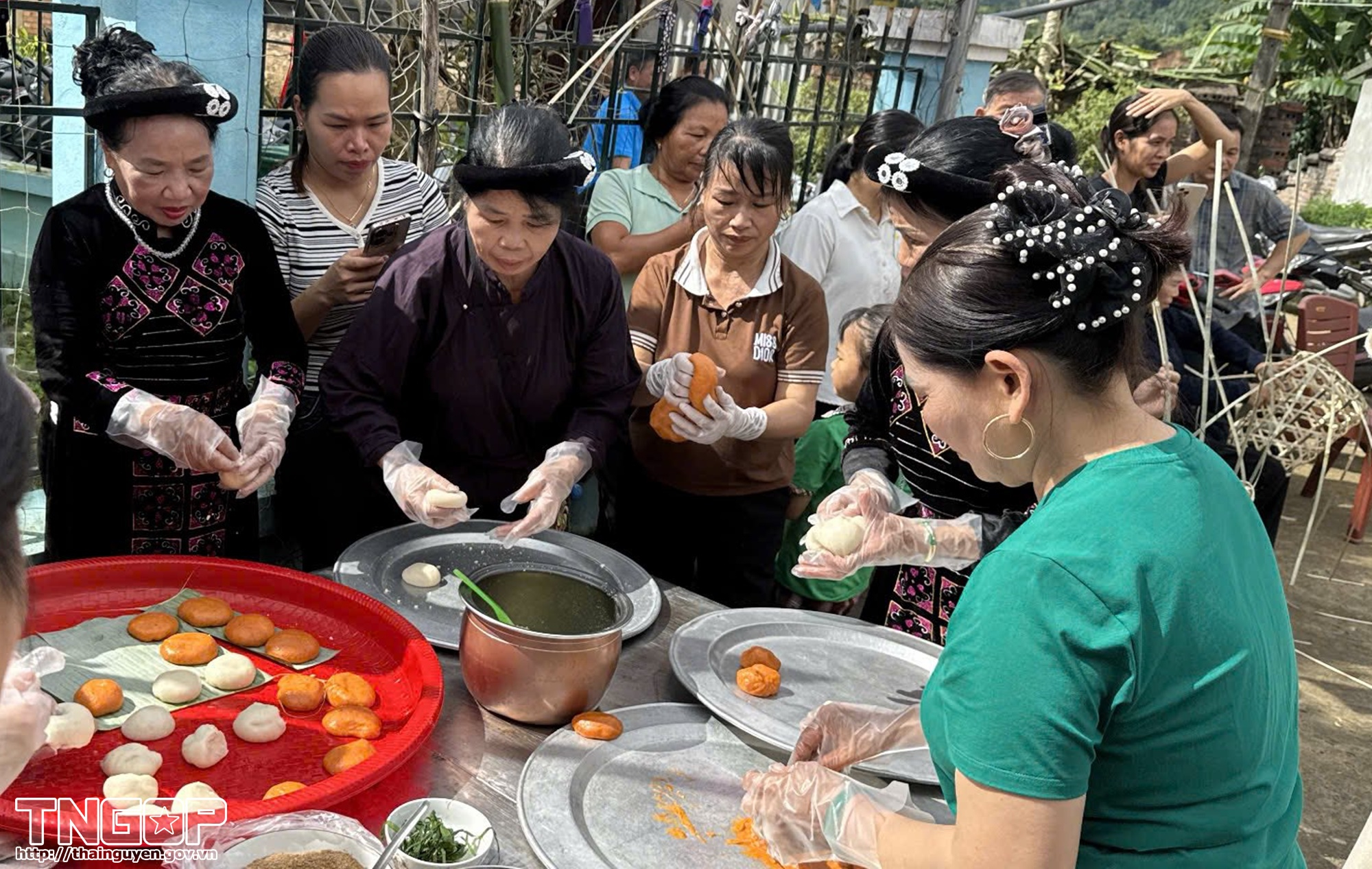 Dịp này là thời gian vừa hoàn thành vụ gặt, người dân thôn Nam Lanh Chang, xã Phủ Thông dùng lúa nương mới làm nguyên liệu thi làm bánh dày