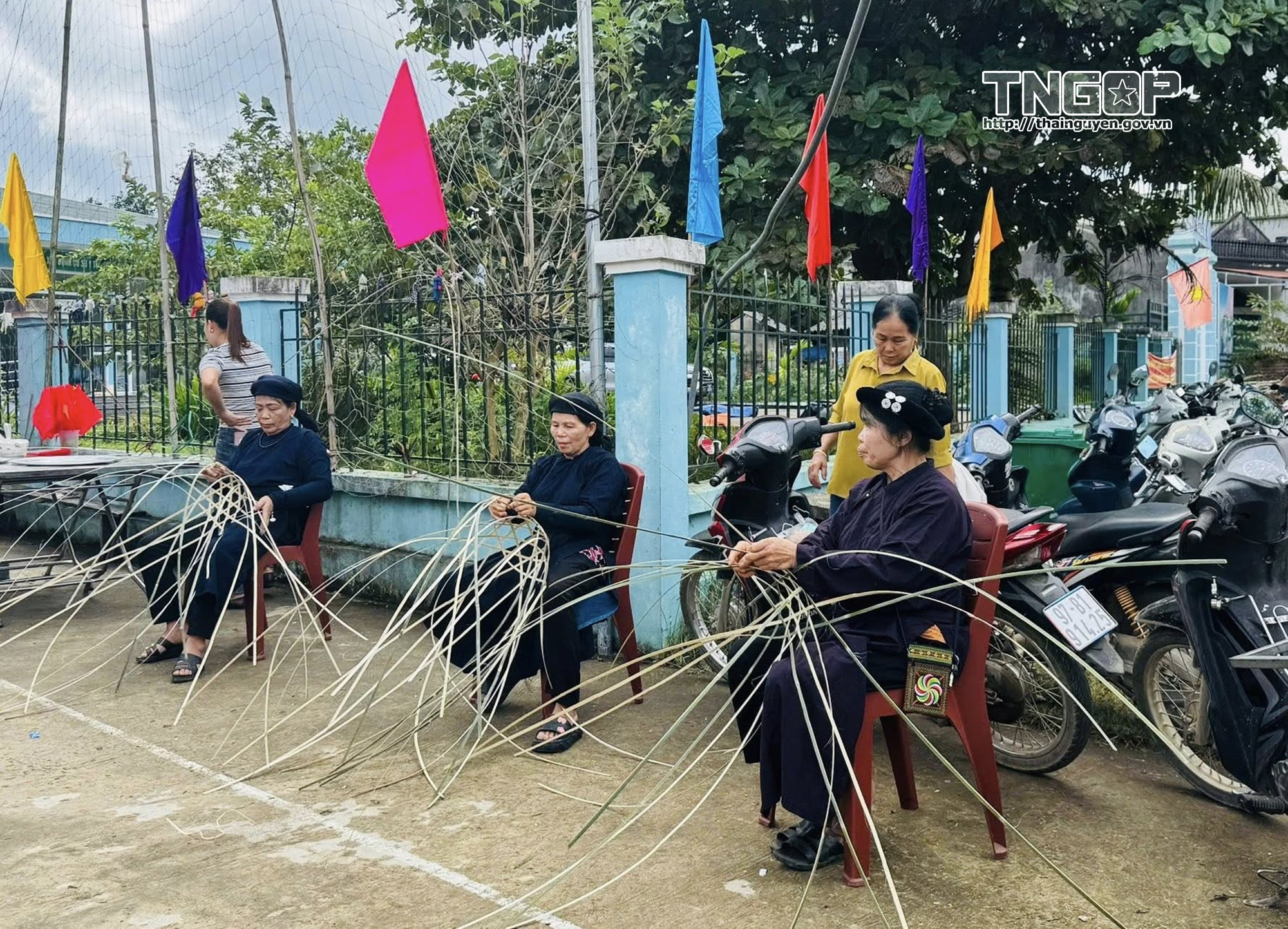 Những người phụ nữ Tày Nùng xã Phủ Thông trong trang phục truyền thống khéo léo thi đan lát