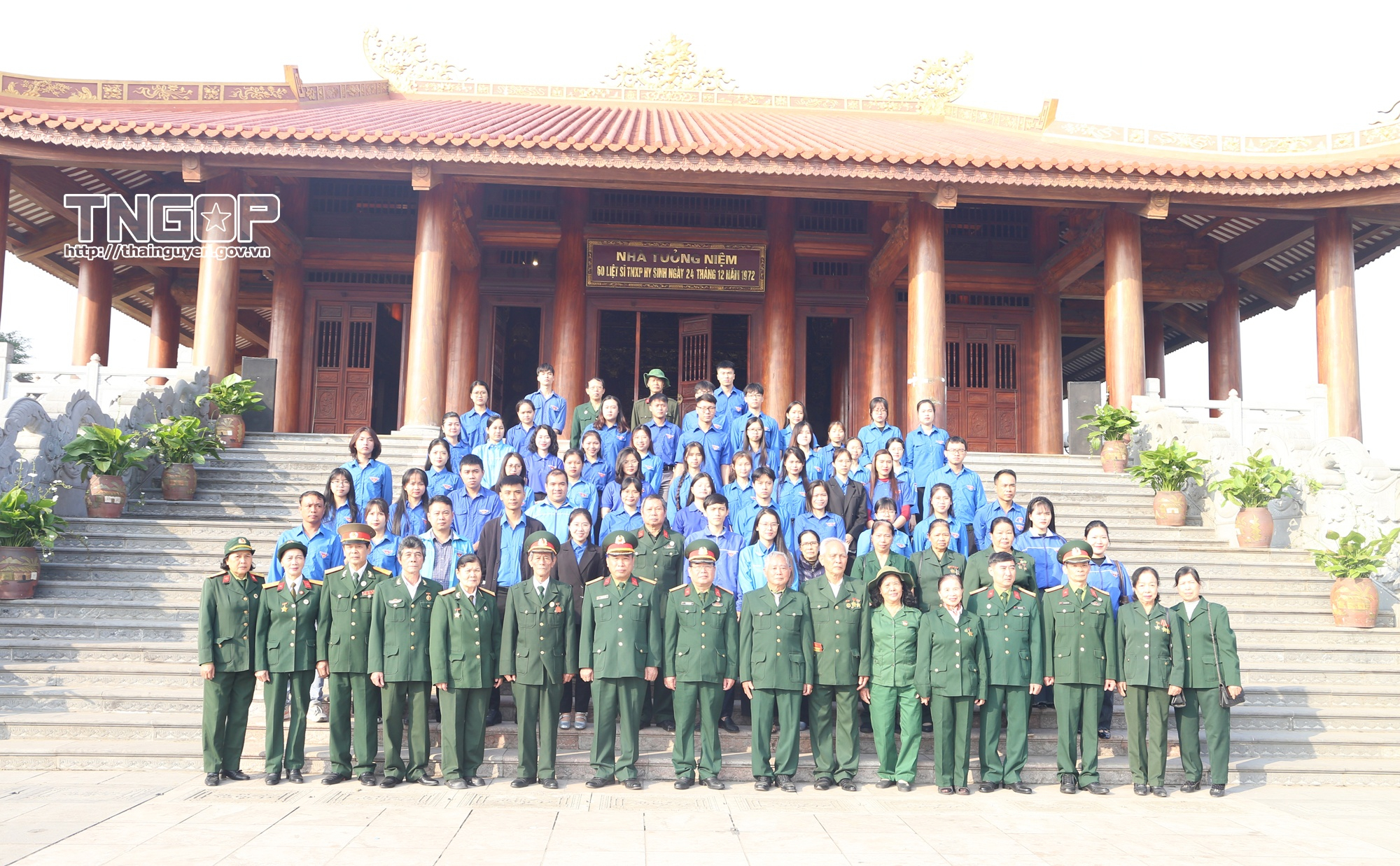 Đoàn thanh niên, Hội Cựu Chiến binh, Hội Cựu TNXP phường Phan Đình Phùng và phường Gia Sàng chụp ảnh lưu niệm tại Khu Di tích