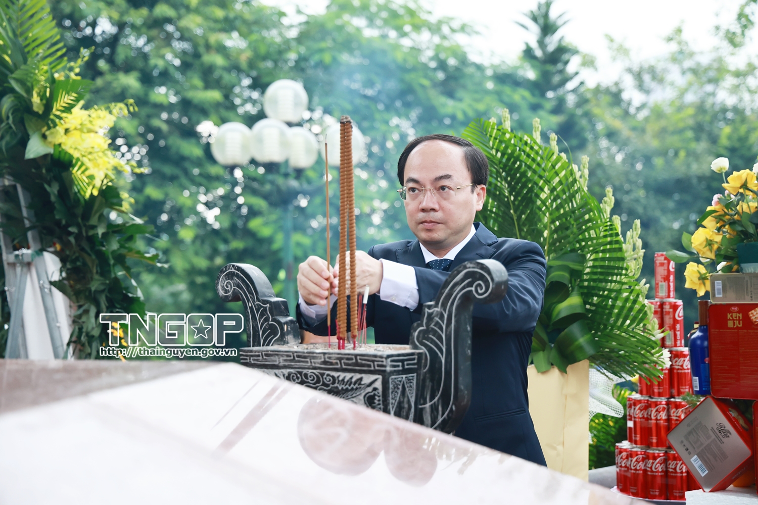 Sau lễ dâng hương tại Đài tưởng niệm các Anh hùng liệt sĩ của tỉnh, Đoàn đại biểu đã dâng hương tại Đền thờ Đội Cấn - nơi tưởng niệm lãnh tụ Cuộc khởi nghĩa Thái Nguyên, gắn liền với phong trào yêu nước và truyền thống cách mạng của địa phương.