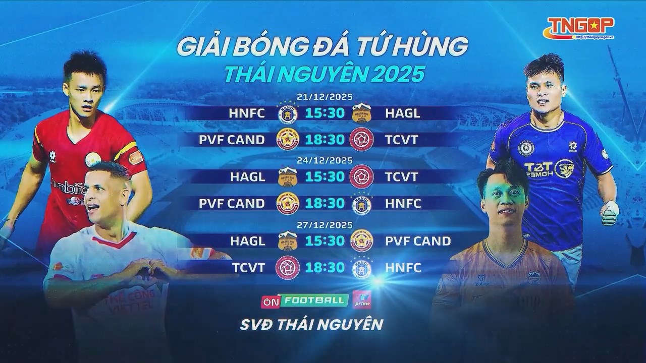 Lịch trình thi đấu các trận của Giải bóng đá Tứ hùng - Thái Nguyên năm 2025