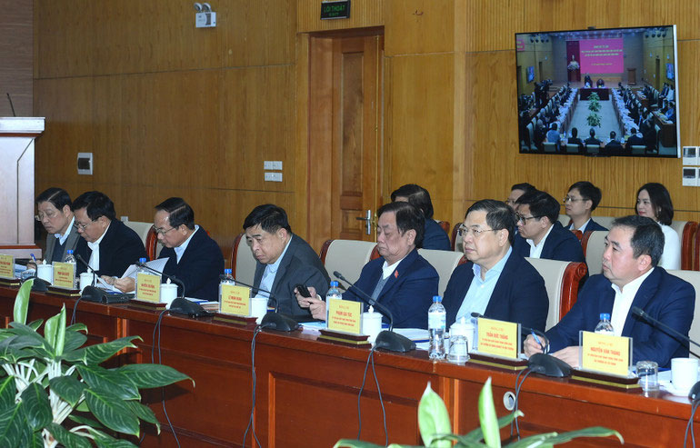 Dự buổi làm việc có các đồng chí Ủy viên Bộ Chính trị: Trần Cẩm Tú, Thường trực Ban Bí thư; Phan Đình Trạc, Bí thư Trung ương Đảng, Trưởng Ban Nội chính Trung ương; Nguyễn Xuân Thắng, Giám đốc Học viện Chính trị quốc gia Hồ Chí Minh, Chủ tịch Hội đồng Lý luận Trung ương; các đồng chí Bí thư Trung ương Đảng, Ủy viên Trung ương Đảng, lãnh đạo Chính phủ, Quốc hội, các ban, bộ, ngành, cơ quan Trung ương và một số chuyên gia, nhà khoa học.