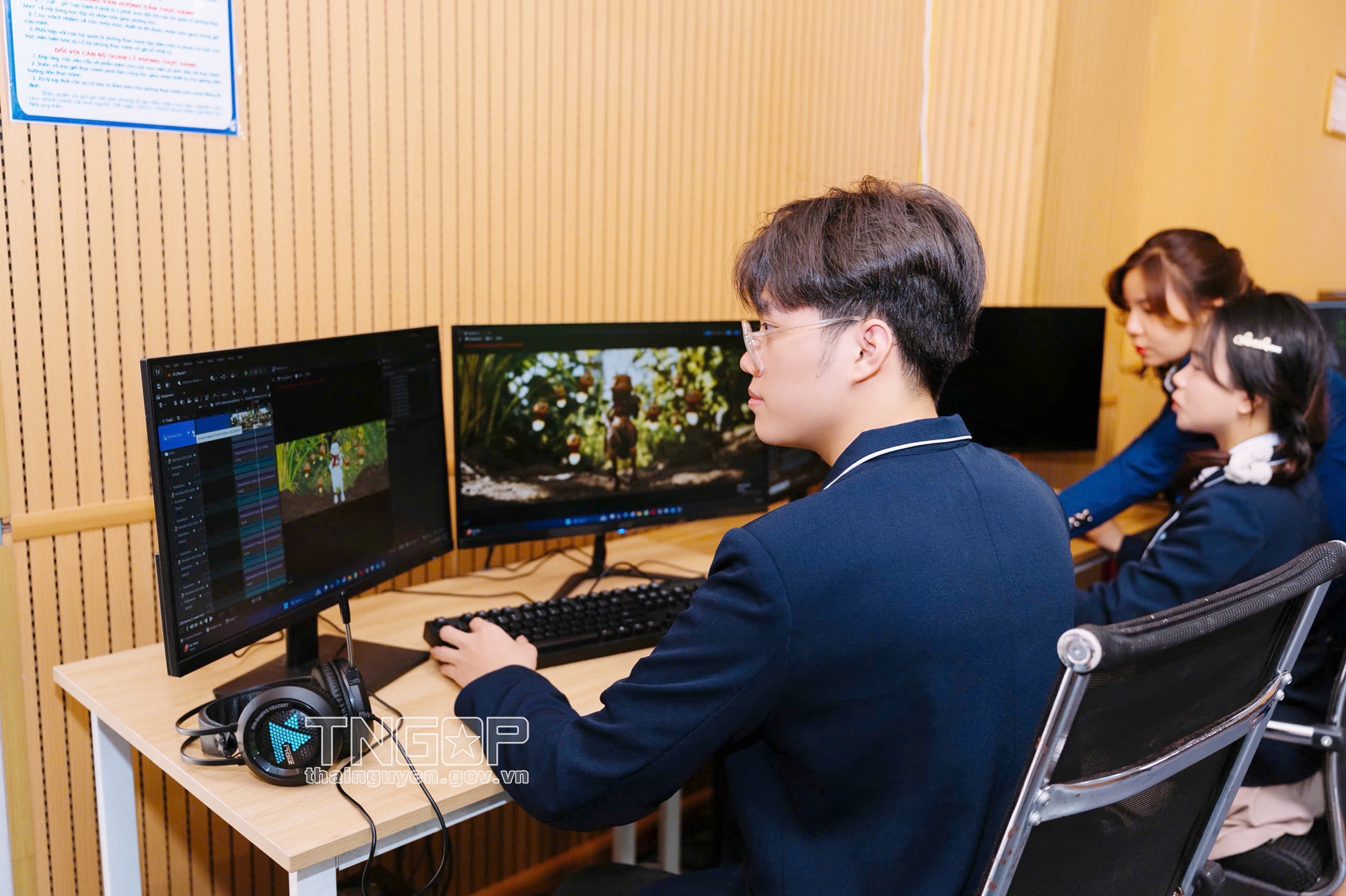 Sinh viên ICTU tại phòng dựng Phim trường số