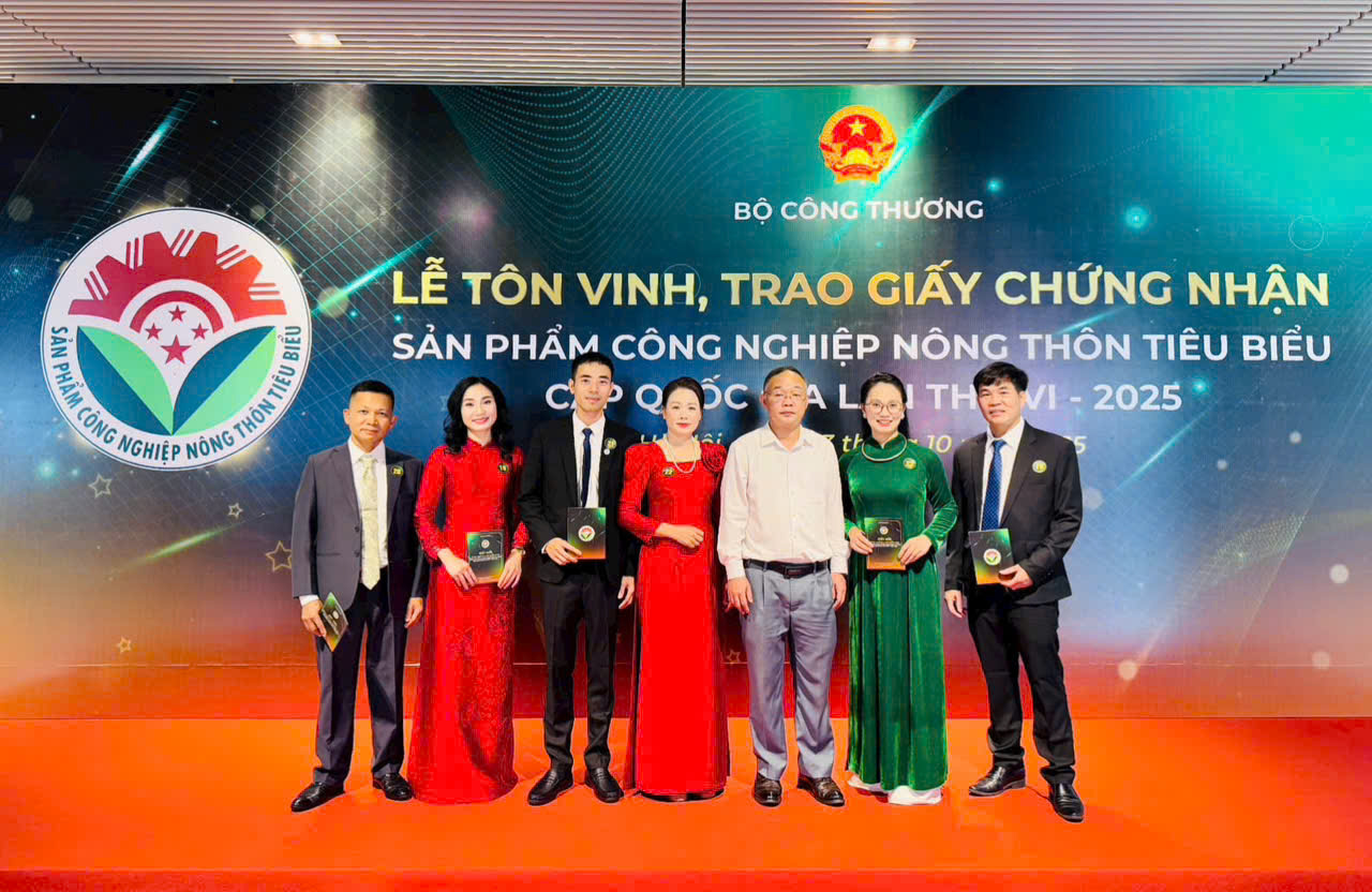 Lãnh đạo Sở Công Thương và đại diện các hợp tác xã, doanh nghiệp của tỉnh Thái Nguyên có sản phẩm được tôn vinh sản phẩm công nghiệp nông thôn tiêu biểu cấp quốc gia năm 2025