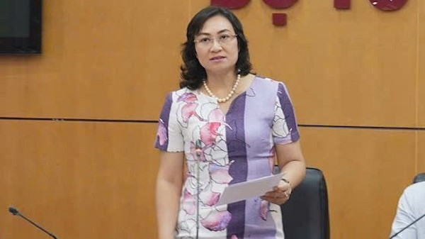 Thứ trưởng Công thương Phan Thị Thắng trong phiên họp thẩm định dự Luật Thương mại điện tử