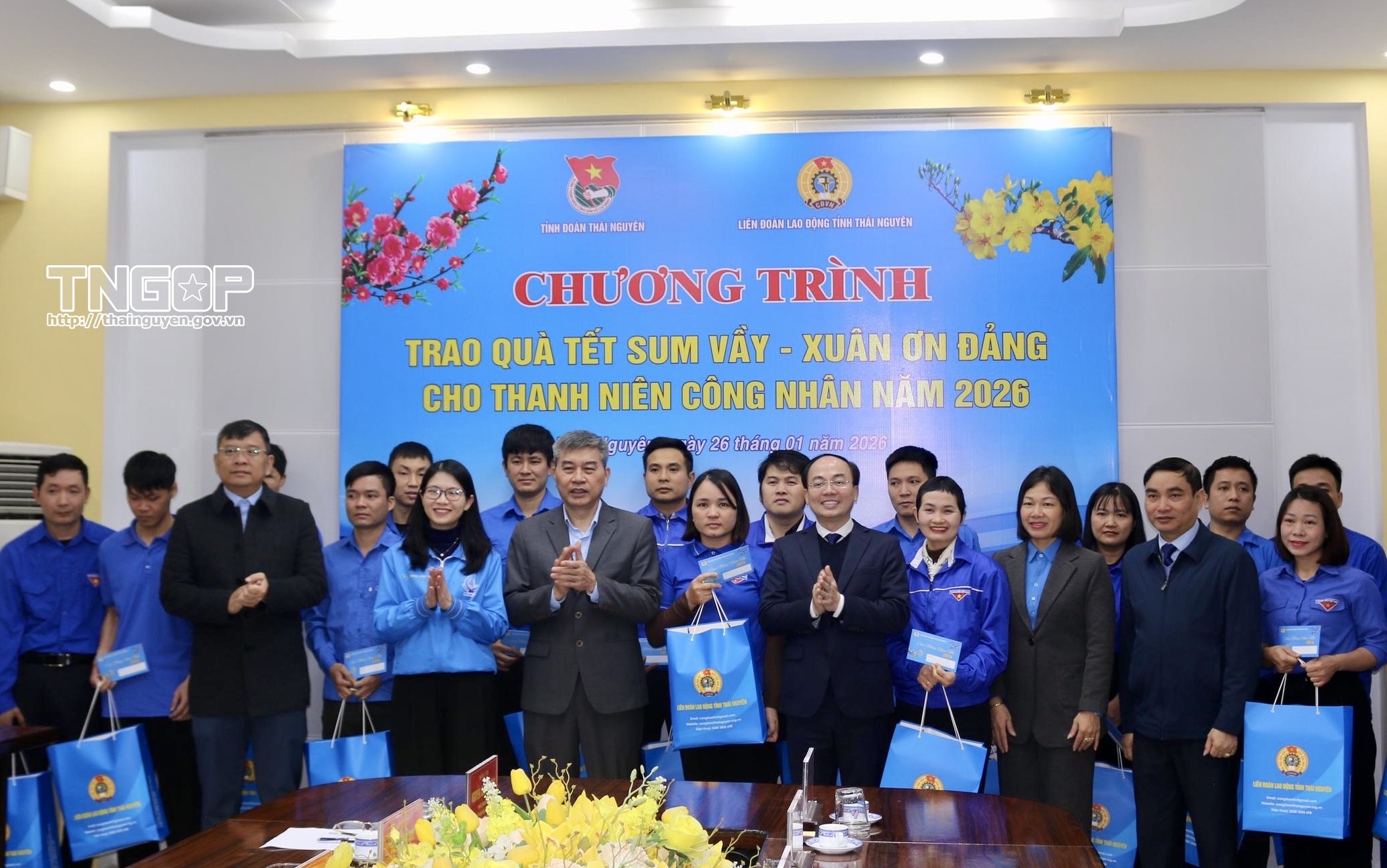 Đồng chí Nguyễn Đăng Bình, Phó Bí thư Thường trực Tỉnh ủy, Chủ tịch HĐND tỉnh dự và trao quà trong Chương trình Tết sum vầy - Xuân ơn Đảng cho thanh niên công nhân năm 2026