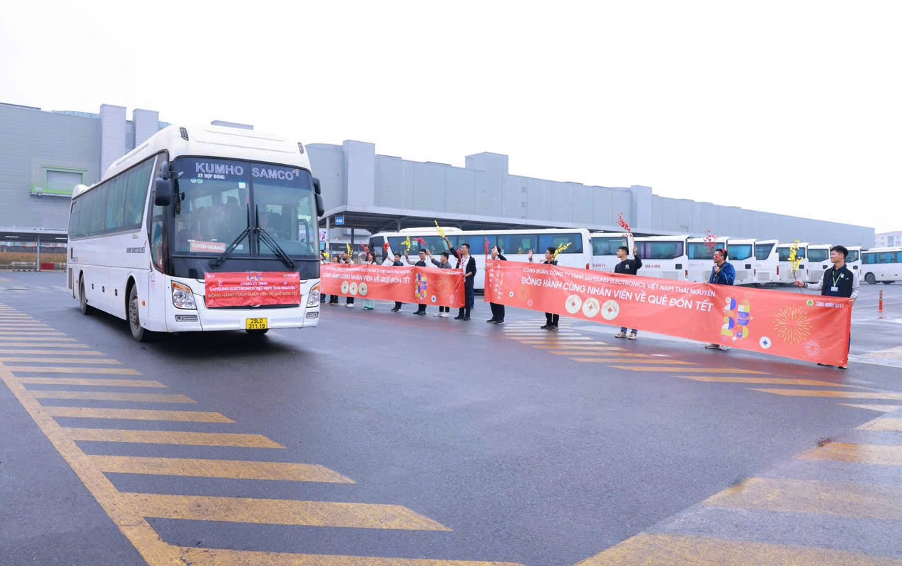 Hàng năm, Công đoàn Công ty TNHH Samsung Electronics Việt Nam Thái Nguyên đều tổ chức chuyến xe miễn phí đưa đoàn viên, người lao động về quê đón Tết