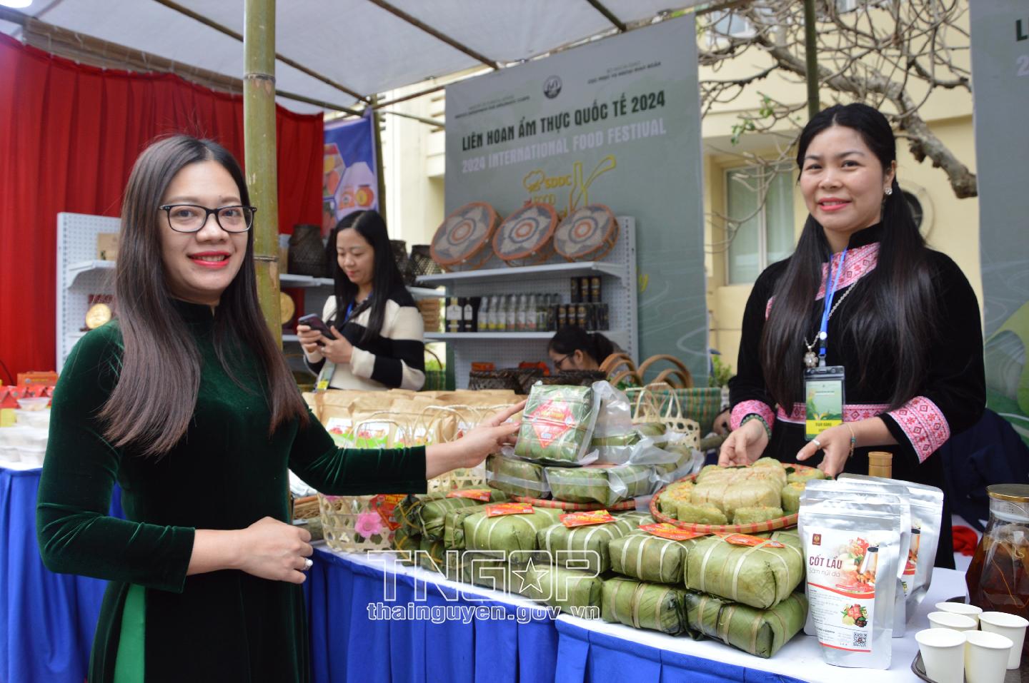 Diễn ra trong hai ngày (7 và 8/12) tại Khu Ngoại giao đoàn (Vạn Phúc, Ba Đình, Hà Nội), Liên hoan Ẩm thực quốc tế 2024 là dịp để thực khách trải nghiệm ẩm thực của hơn 60 quốc gia và vùng lãnh thổ. Trong các ẩm thực nổi tiếng của Việt Nam, có nhiều sản phẩm OCOP, tiêu biểu, đặc trưng nông nghiệp của tỉnh Thái Nguyên.