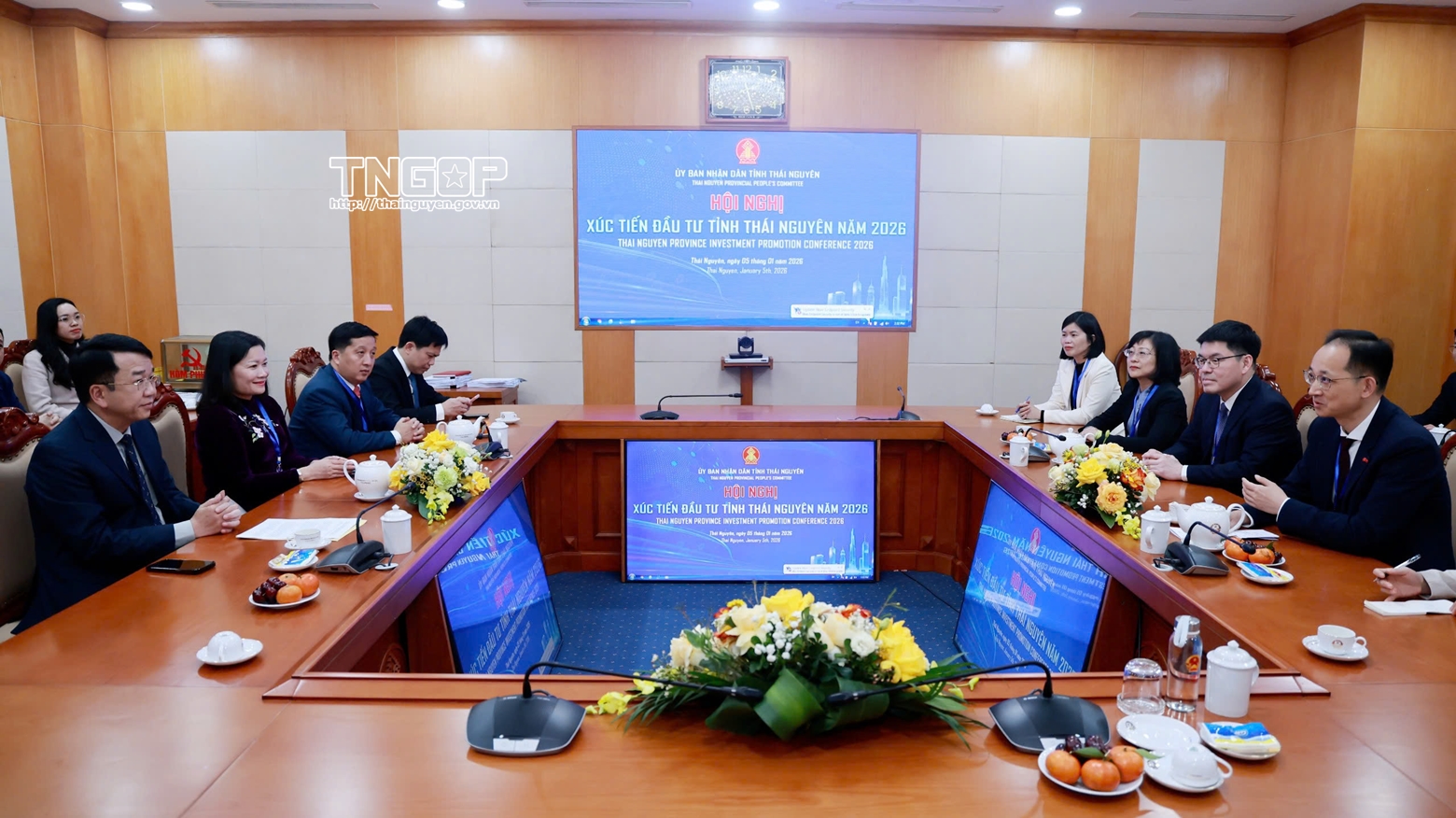 Trong khuôn khổ Hội nghị Xúc tiến đầu tư tỉnh Thái Nguyên năm 2026, chiều 5/1, đã diễn ra Hội đàm giữa đồng chí Nguyễn Thanh Bình, Phó Bí thư Tỉnh ủy Thái Nguyên và ngài Vương Quần, Đại biện lâm thời của Đại sứ quán Trung Quốc tại Việt Nam. Cuộc gặp gỡ diễn ra trong bối cảnh Thái Nguyên đang khẳng định vị thế là trung tâm công nghiệp - dịch vụ của vùng trung du miền núi phía Bắc, đồng thời mở rộng quan hệ hợp tác quốc tế nhằm thu hút nguồn lực đầu tư chất lượng cao.
