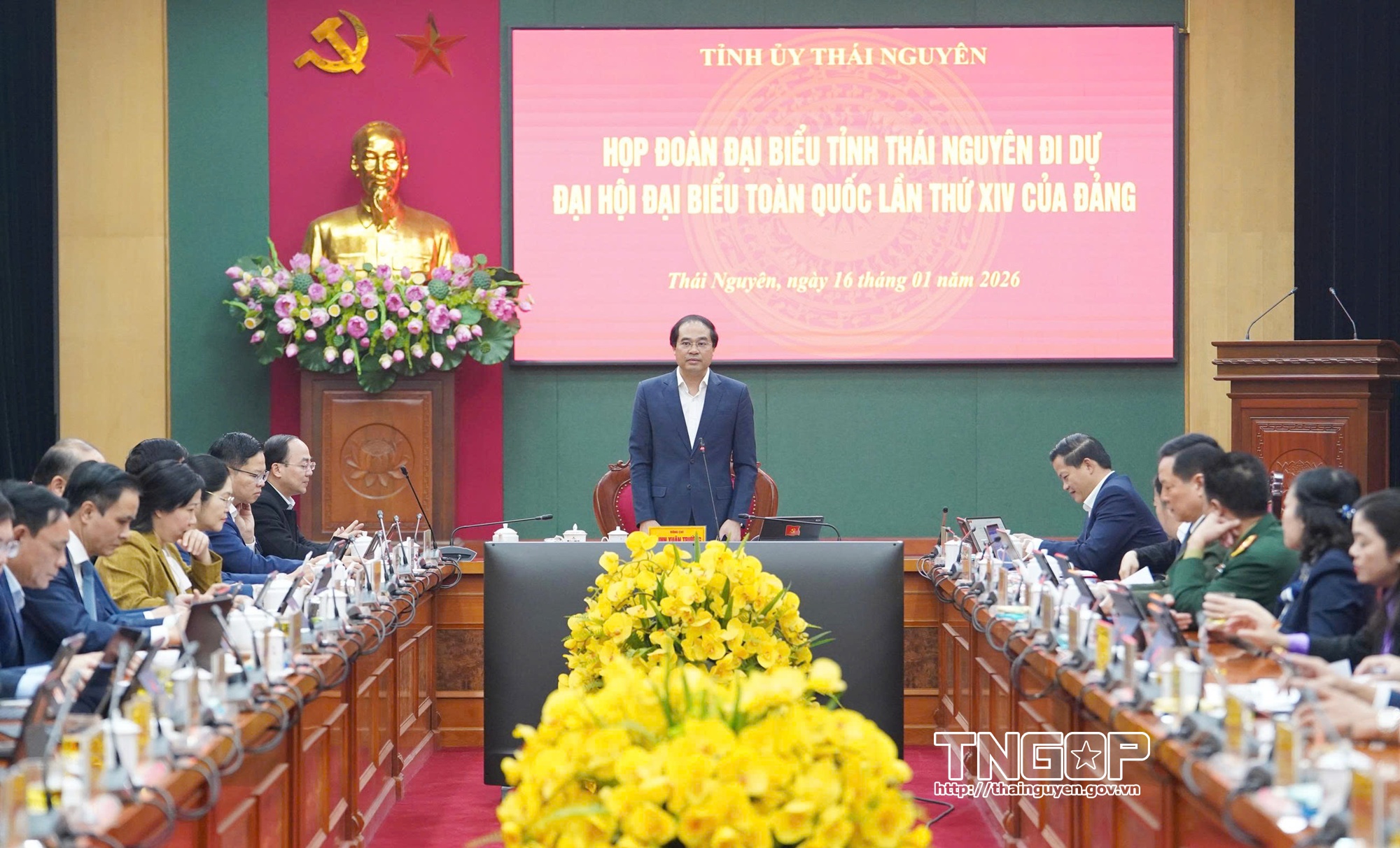 Sáng 16/1, Tỉnh ủy Thái Nguyên tổ chức họp Đoàn đại biểu tỉnh Thái Nguyên đi dự Đại hội đại biểu toàn quốc lần thứ XIV của Đảng. Đồng chí Trịnh Xuân Trường, Bí thư Tỉnh ủy, Trưởng Đoàn đại biểu tỉnh Thái Nguyên chủ trì cuộc họp.