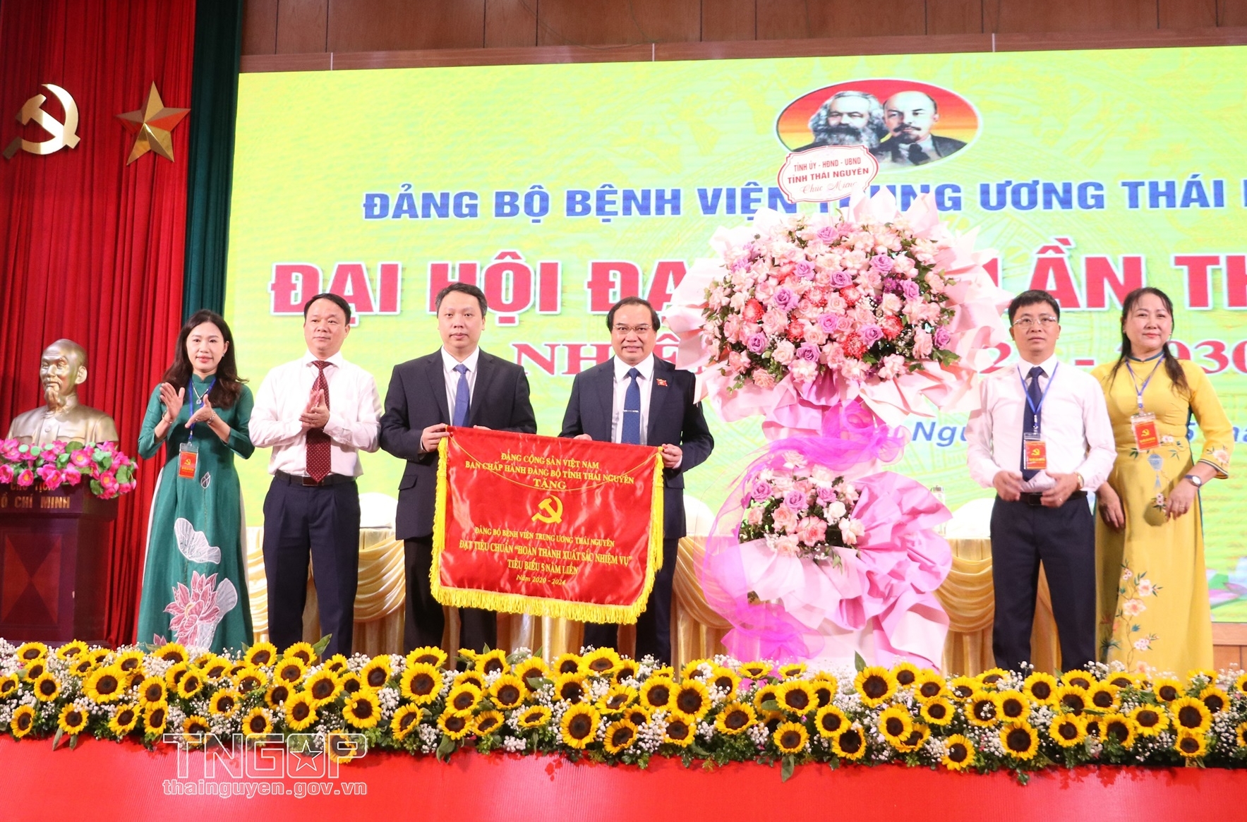 Nhân dịp này, Ban Thường vụ Tỉnh ủy Thái Nguyên đã tặng Cờ thi đua cho Đảng bộ Bệnh viện Trung ương Thái Nguyên đạt tiêu chuẩn “Hoàn thành xuất sắc nhiệm vụ” tiêu biểu 5 năm liền 2020 - 2024.