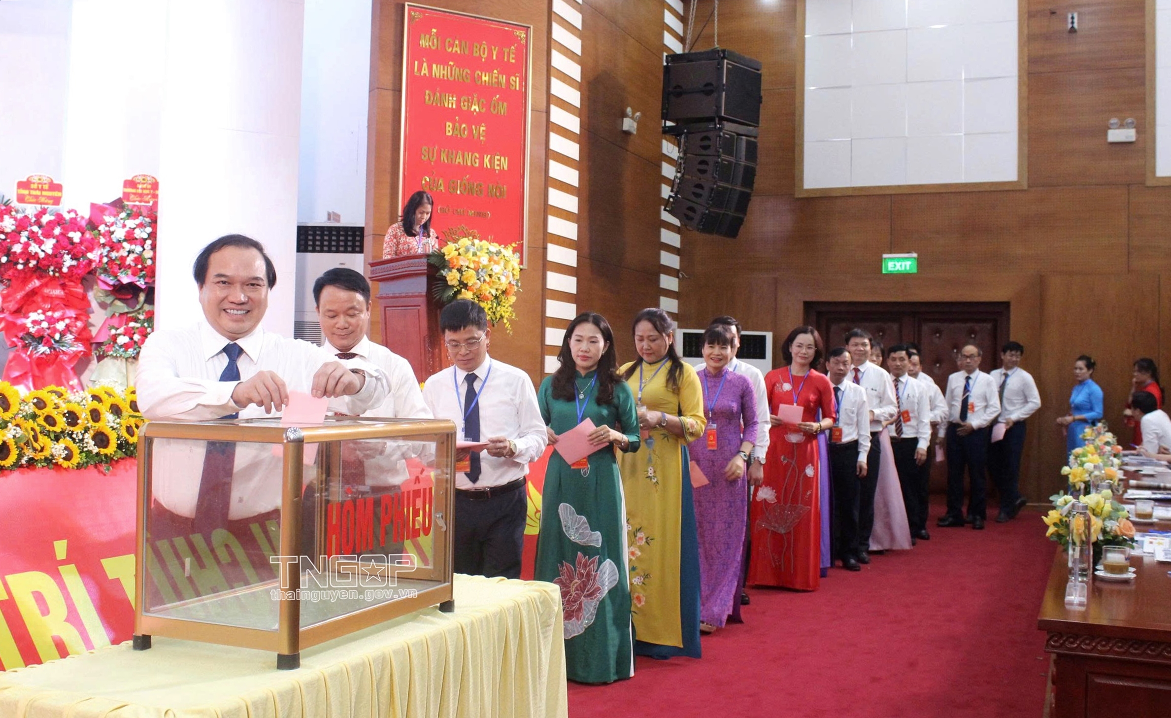 Các đại biểu bỏ phiếu bầu Ban Chấp hành Đảng bộ Bệnh viện Trung ương Thái Nguyên khóa XVII