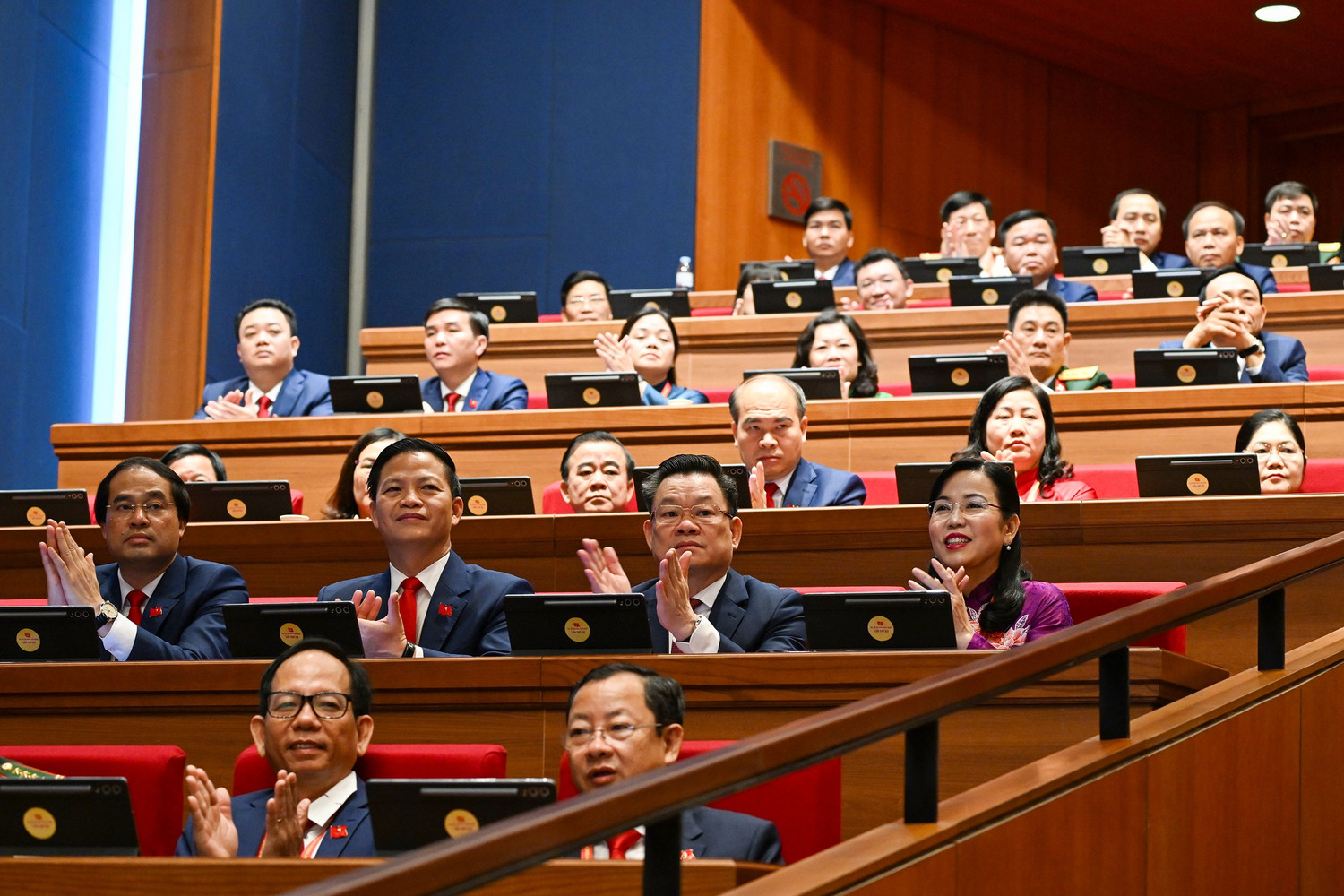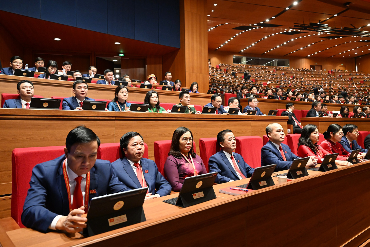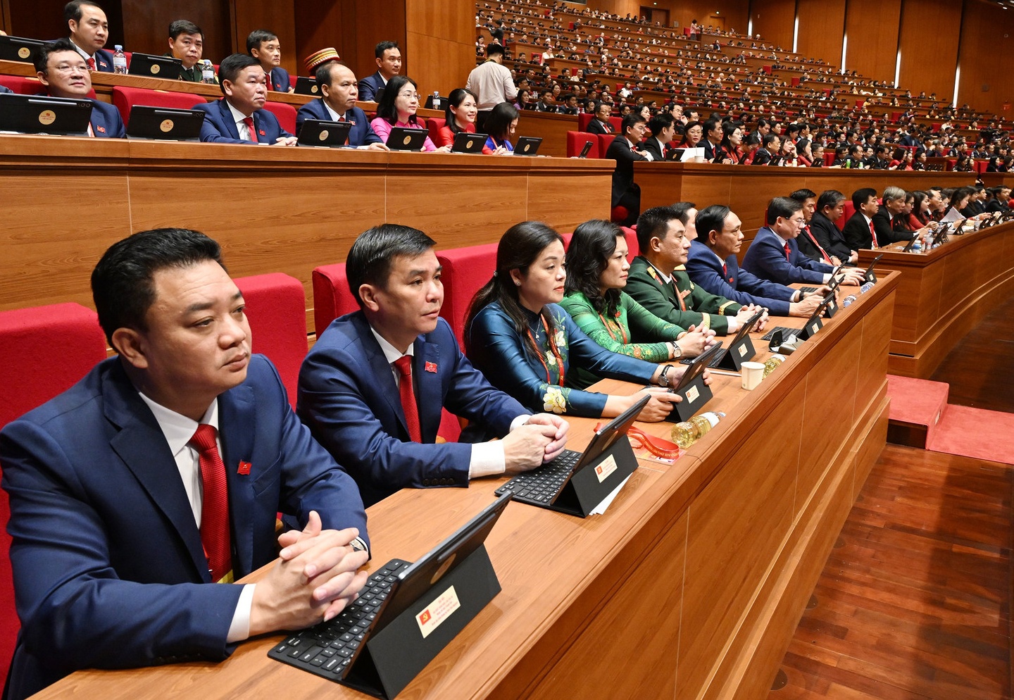 Các đồng chí trong Đoàn đại biểu Đảng bộ tỉnh Thái Nguyên dự Đại hội (ảnh: Hoàng Hưng)