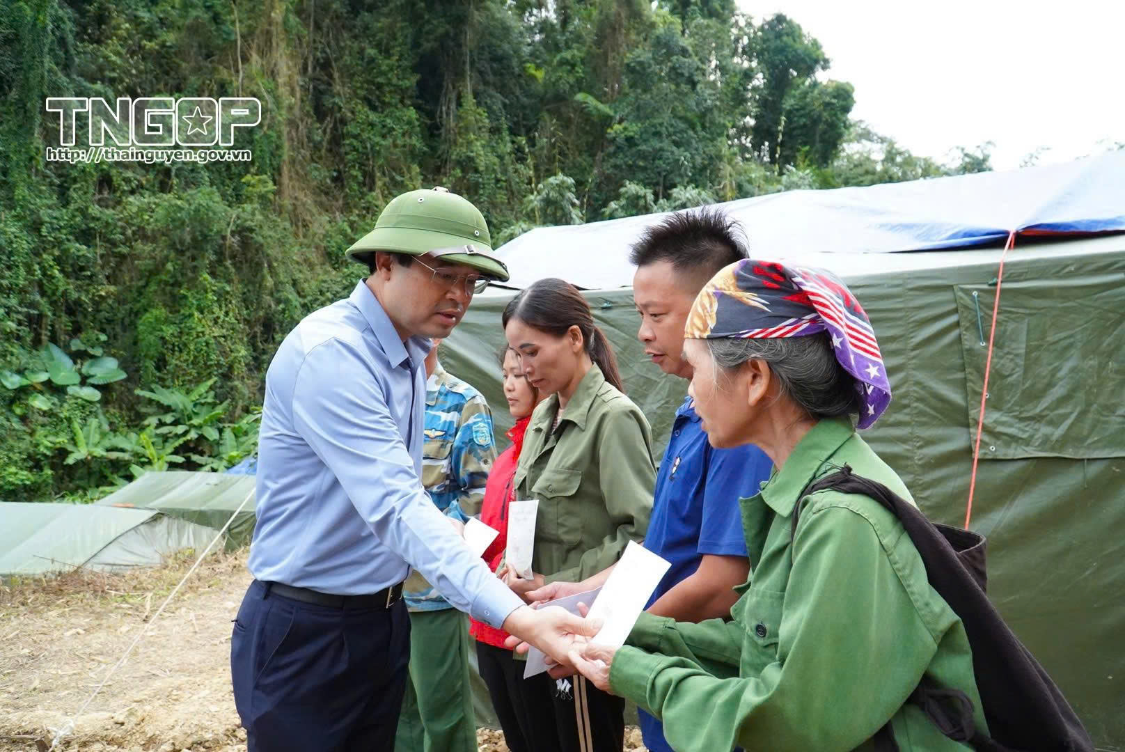 Nhằm chia sẻ khó khăn với các hộ dân bị ảnh hưởng nặng, đồng chí Bí thư Tỉnh ủy đã trao tặng tiền mặt và một số nhu yếu phẩm cho 14 hộ dân tại thôn Lủng Siên và 36 hộ dân tại thôn Kim Vân.