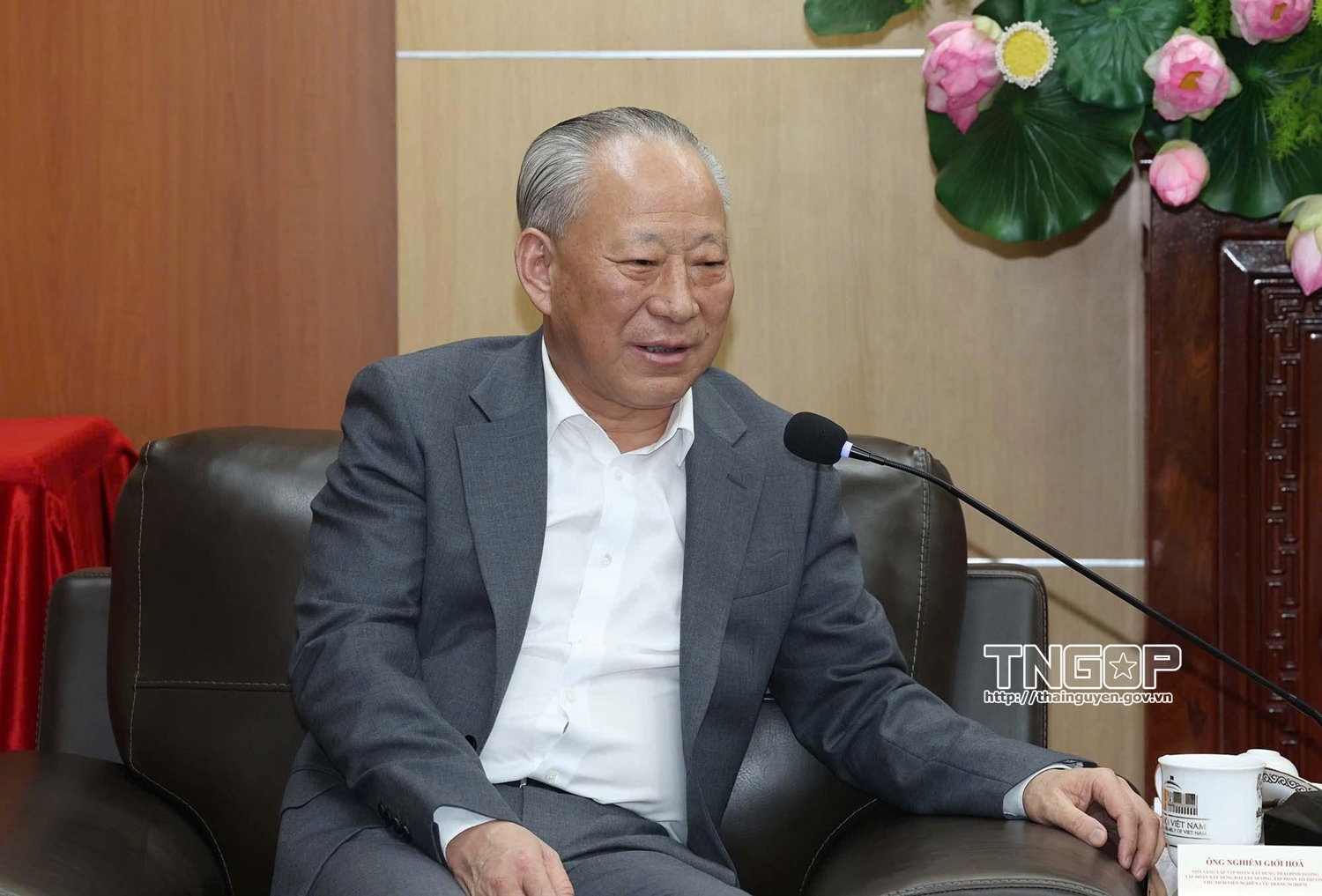 Ông Nghiêm Giới Hòa, người sáng lập Tập đoàn Xây dựng Thái Bình Dương, Chủ tịch Viện nghiên cứu Trang Nghiêm trân trọng cảm ơn sự đón tiếp của đồng chí Bí thư Tỉnh ủy Trịnh Xuân Trường và các đồng chí lãnh đạo tỉnh. Đánh giá cao những tiềm năng, thế mạnh cũng như thành tựu phát triển kinh tế của tỉnh Thái Nguyên thời gian qua, ông Nghiêm Giới Hòa cho biết Tập đoàn mong muốn hợp tác, đầu tư các dự án hạ tầng tại tỉnh Thái Nguyên.