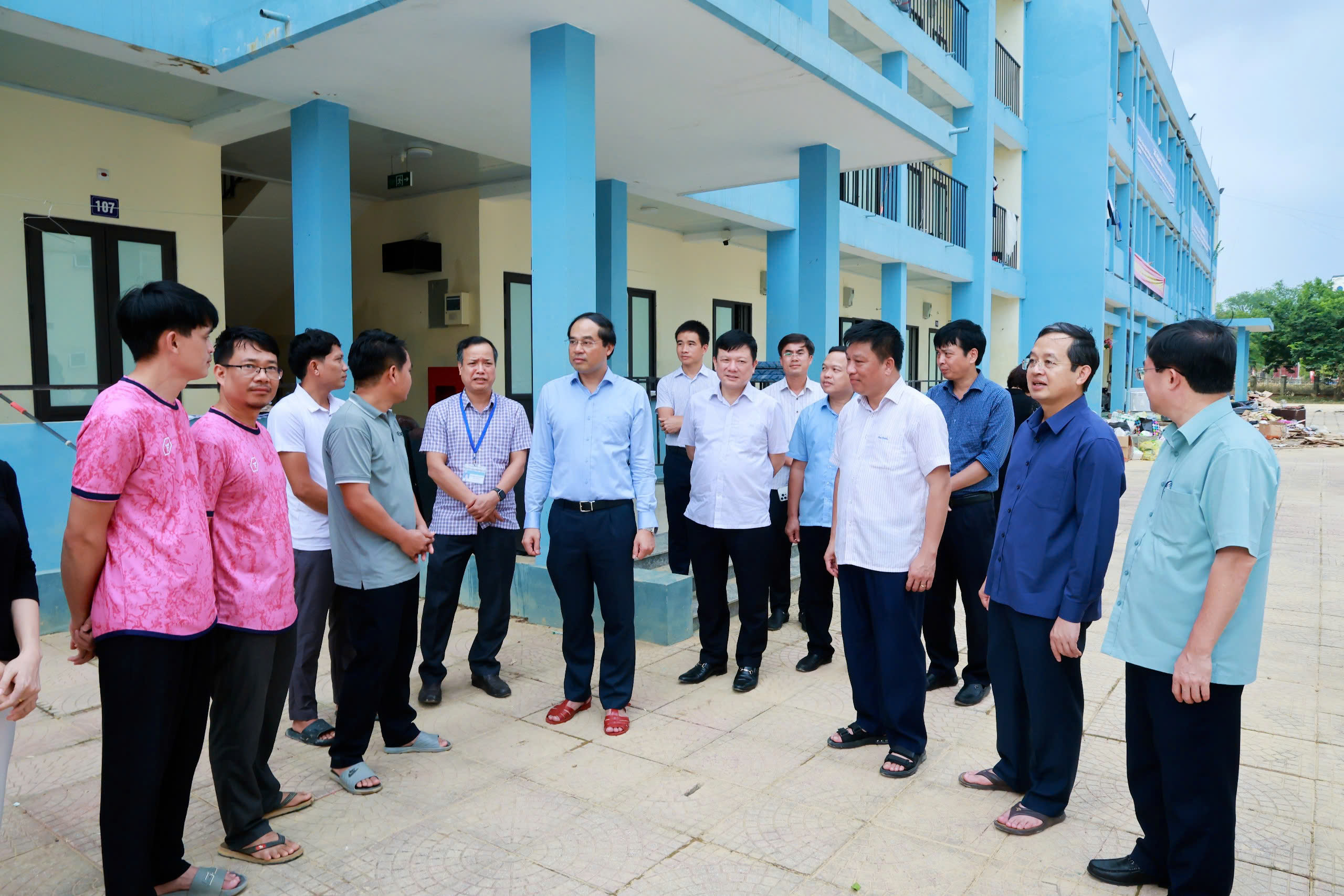 Trực tiếp thăm, động viên sinh viên tại ký túc xá Trường Đại học Sư phạm và Trung tâm Thực nghiệm, Trường Đại học Nông lâm, đồng chí Bí thư Tỉnh ủy chia sẻ với nhà trường về thiệt hại do mưa lũ gây ra, đồng thời đánh giá cao công tác chủ động ứng phó và khắc phục hậu quả của mưa lũ của ĐHTN. Đồng chí yêu cầu: Mọi công tác khắc phục phải đảm bảo an toàn tuyệt đối, đặc biệt là an toàn điện, các khu vực ký túc xá, lớp học phải đảm bảo tuyệt đối an toàn trước khi đưa sinh viên trở lại học tập. Đồng chí Bí thư Tỉnh ủy đề nghị các đơn vị chú trọng công tác vệ sinh môi trường, đảm bảo an toàn thực phẩm, phòng chống dịch bệnh sau mưa lũ, đảm bảo sức khỏe và sự an toàn của các sinh viên, cán bộ, giảng viên song song với đảm bảo chất lượng và kế hoạch công tác giáo dục, đào tạo.