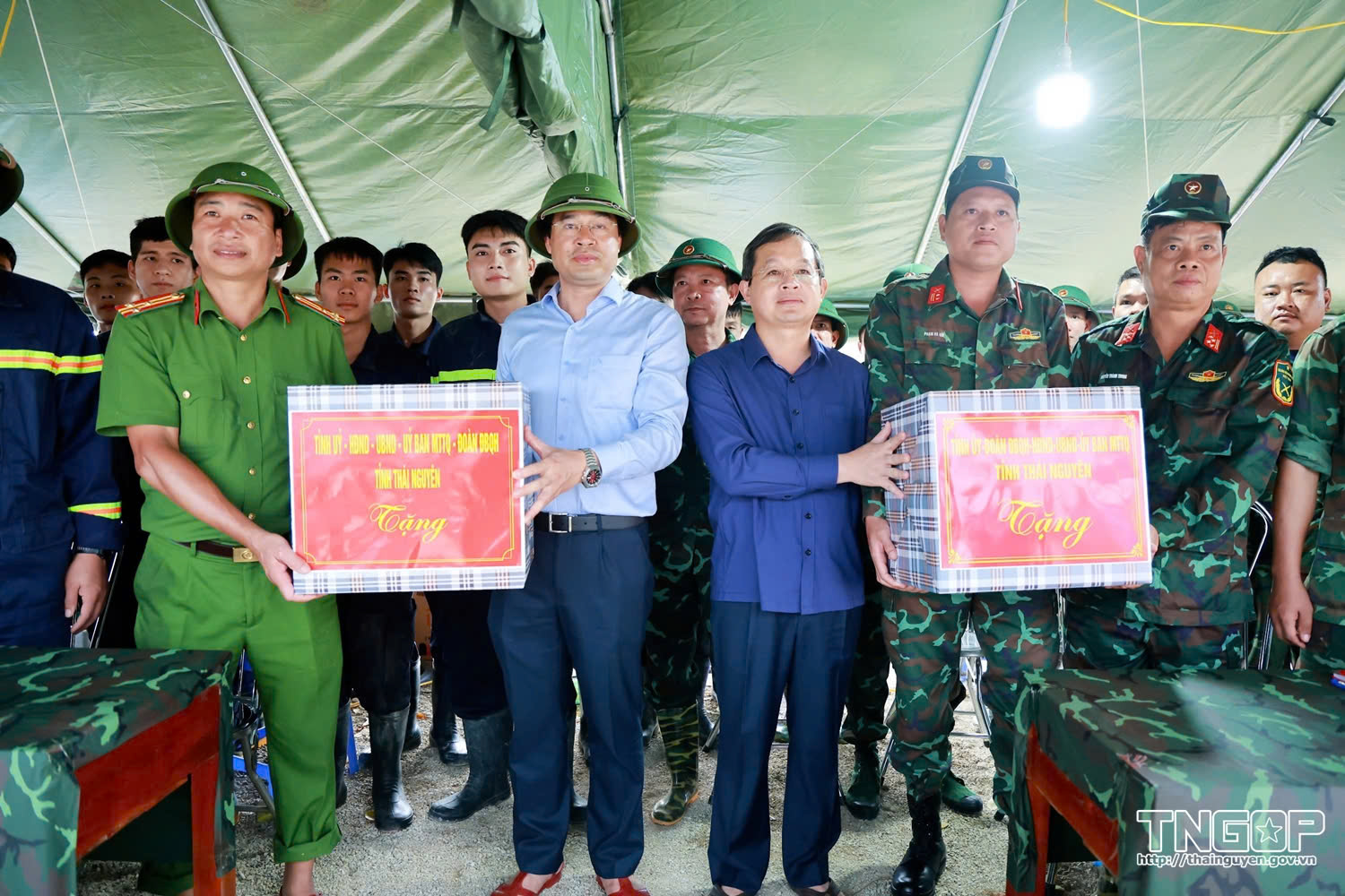 Đồng chí Bí thư Tỉnh ủy và đồng chí Chủ tịch UBND tỉnh thăm hỏi, động viên và trao quà tới các cán bộ, chiến sĩ các lực lượng tham gia ứng trực và hỗ trợ Nhân dân khắc phục hậu quả thiên tai
