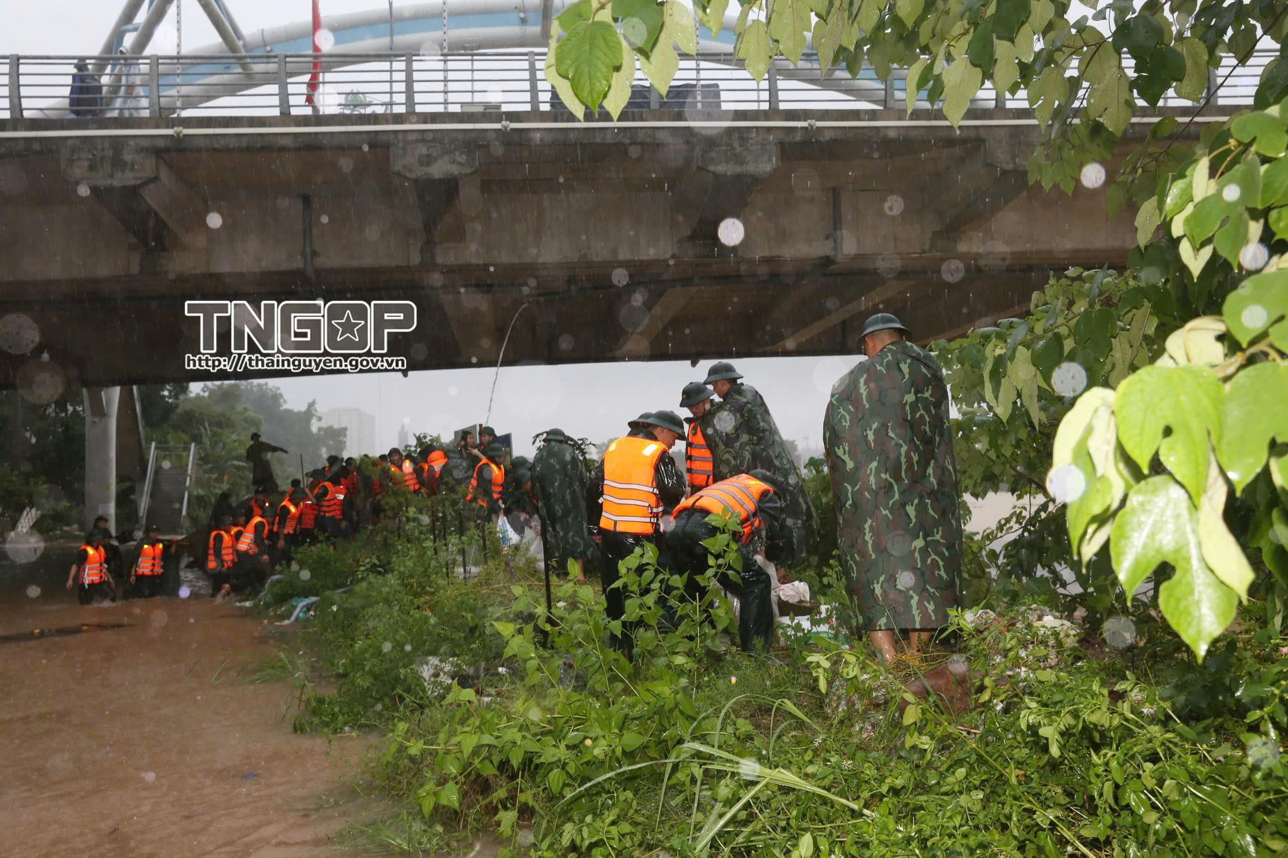 Tại tuyến đê sông Cầu (phường Phan Đình Phùng), theo ghi nhận lúc 15h00' ngày 7/10, mực nước tại trạm Gia Bẩy là 29,05 m, cao hơn mức báo động 3 là 2,05 m, hiện lũ vẫn đang tiếp tục lên. Trước tình hình đó, cùng với lực lượng vũ trang tỉnh, các lực lượng của địa phương, Quân khu 1 đã huy động thêm hàng trăm cán bộ, chiến sĩ tham gia hỗ trợ gia cố, đê bao tại các vị trí xung yếu trên tuyến, nhằm bảo đảm an toàn cho khu vực và hạn chế thấp nhất thiệt hại do mưa lũ gây ra.