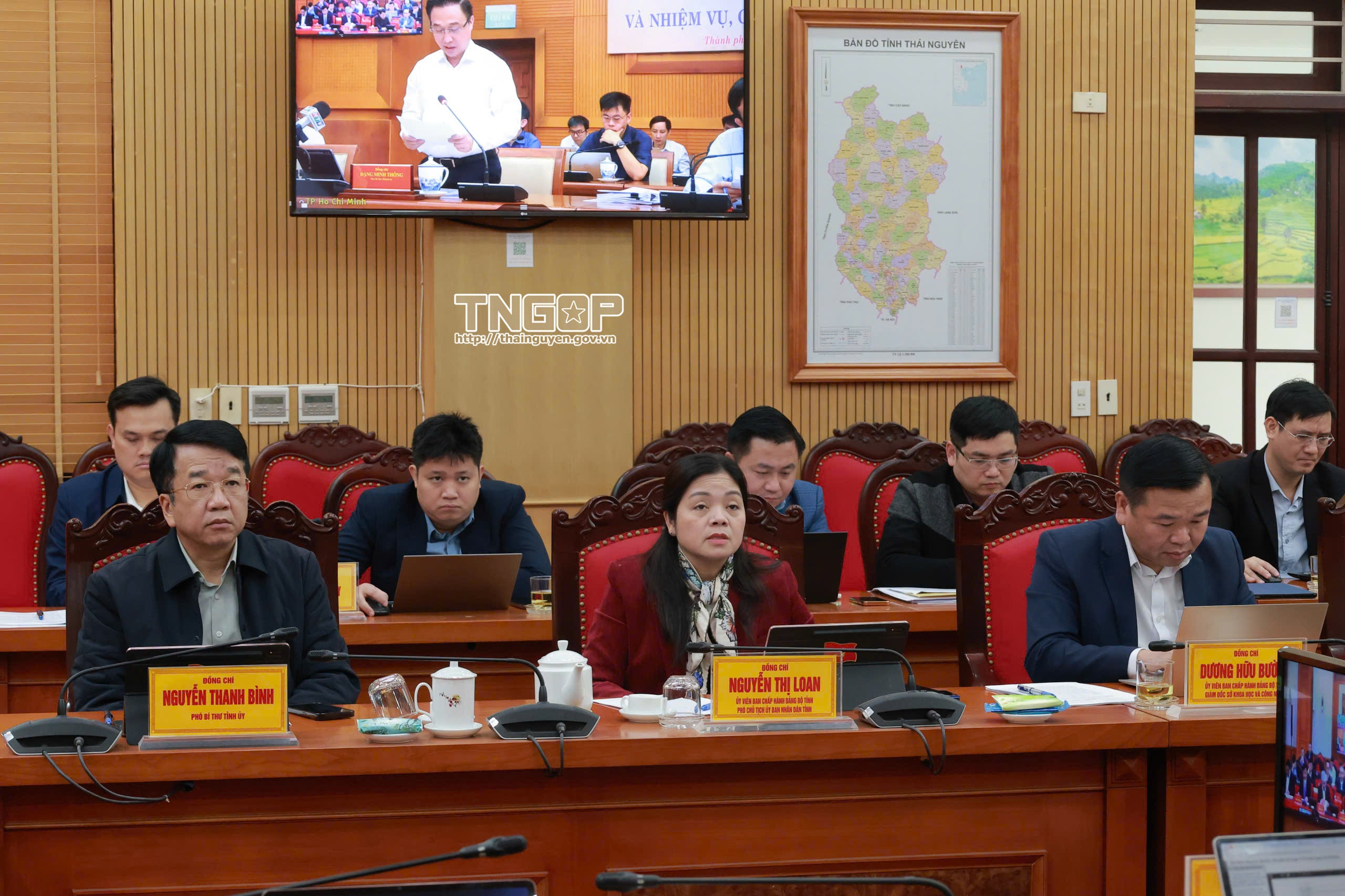 Dự Hội nghị tại điểm cầu tỉnh Thái Nguyên có các đồng chí: Trịnh Xuân Trường, Bí thư Tỉnh ủy; Nguyễn Đăng Bình, Phó Bí thư Thường trực Tỉnh ủy, Chủ tịch HĐND tỉnh; Nguyễn Thanh Bình, Phó Bí thư Tỉnh ủy; các đồng chí Ủy viên Ban Thường vụ Tỉnh ủy; thành viên Ban Chỉ đạo tỉnh cùng lãnh đạo một số sở, ngành liên quan.