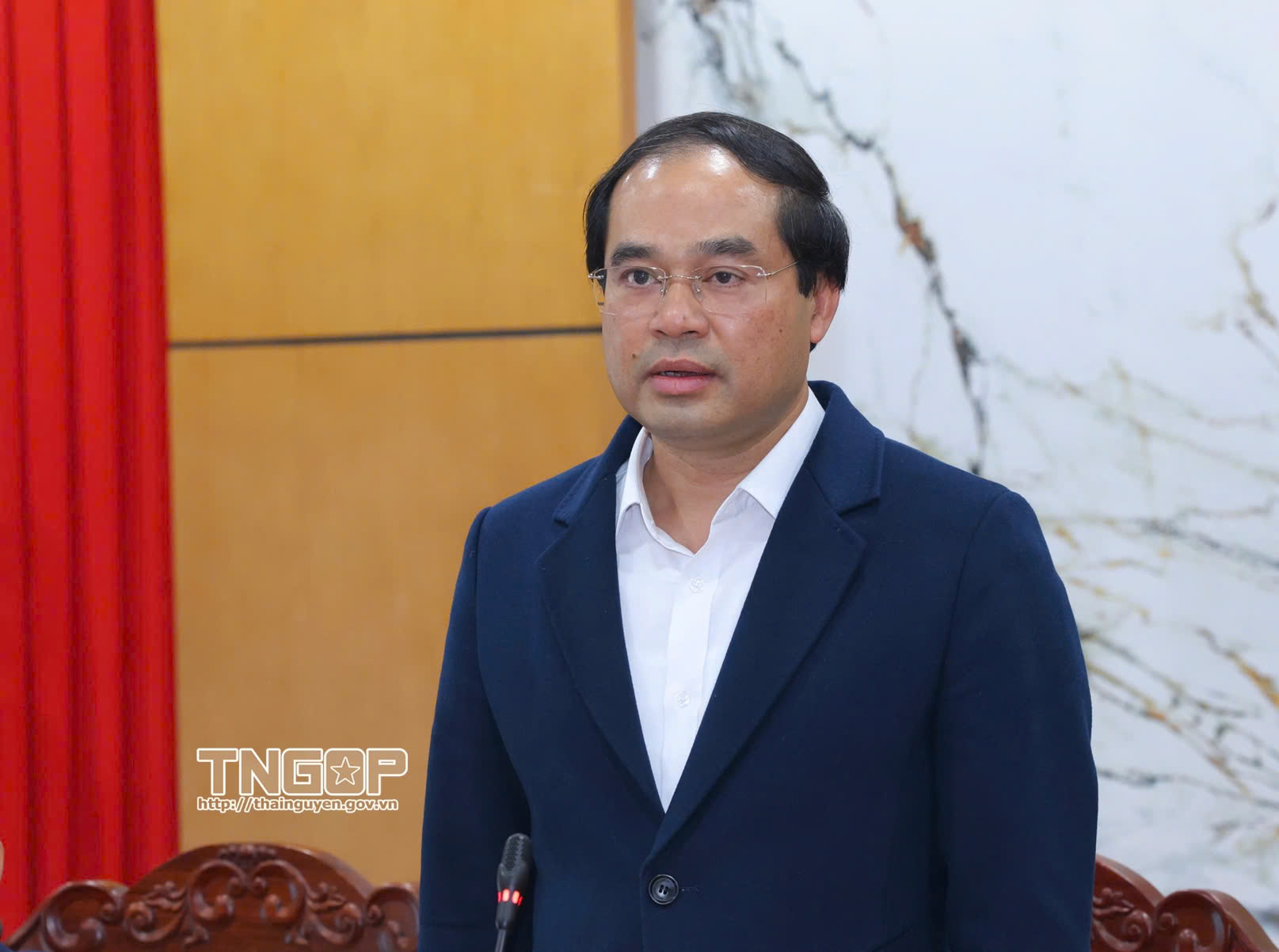 Báo cáo với Bộ trưởng và Đoàn công tác, đồng chí Bí thư Tỉnh ủy Trịnh Xuân Trường đã thông tin về những tiềm năng, lợi thế của tỉnh trong không gian phát triển mới sau hợp nhất; kết quả tình hình phát triển kinh tế - xã hội năm 2025; một số mục tiêu phát triển chiến lược của tỉnh. Năm 2025 kinh tế thế giới và trong nước tiếp tục đối mặt với nhiều khó khăn, thách thức do biến động địa chính trị, thiên tai, biến đổi khí hậu và quá trình sắp xếp tổ chức bộ máy hành chính. Trước bối cảnh đó, với sự chỉ đạo quyết liệt của Tỉnh ủy, HĐND, UBND tỉnh và sự vào cuộc của cả hệ thống chính trị, cộng đồng doanh nghiệp và Nhân dân, tình hình kinh tế - xã hội tỉnh Thái Nguyên cơ bản ổn định và đạt được nhiều kết quả tích cực. Mặc dù tăng trưởng GRDP chưa đạt mục tiêu kế hoạch đề ra, song kết quả phát triển kinh tế - xã hội năm 2025 của tỉnh Thái Nguyên là đáng ghi nhận, cho thấy khả năng thích ứng, phục hồi và duy trì ổn định của nền kinh tế địa phương. Cơ cấu kinh tế tiếp tục chuyển dịch theo hướng tích cực; thị trường hàng hóa, dịch vụ phát triển khá; đời sống Nhân dân cơ bản ổn định. Bên cạnh đó, tỉnh vẫn đối mặt với một số thách thức như: Tăng trưởng chưa có đột phá; tác động lớn của thiên tai; áp lực cải cách thể chế, chuyển đổi số và nâng cao chất lượng nguồn nhân lực trong giai đoạn tới. Trước thách thức và cơ hội đan xen, tỉnh vẫn kiên định đặt mục tiêu tăng trưởng 2 con số, đảm bảo các hoạt động phát triển kinh tế gắn với an sinh xã hội. Trong đó, tỉnh xác định hạ tầng, quy hoạch phải đi trước một bước, với các giải pháp đồng bộ để tăng tốc bứt phá về hạ tầng giao thông kết nối, tạo ra liên kết vùng hiệu quả.