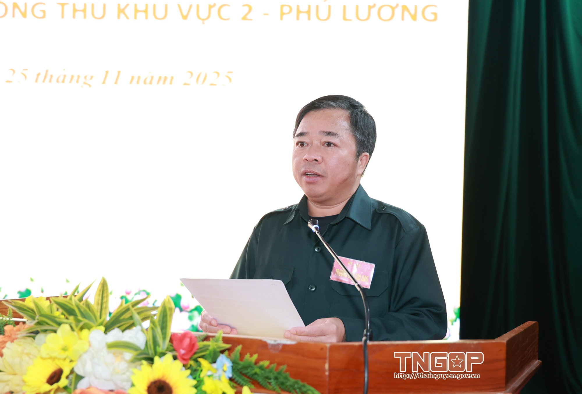 Đồng chí Bùi Văn Lương, Ủy viên Ban Thường vụ Tỉnh ủy, Phó Chủ tịch UBND tỉnh, Trưởng Ban Chỉ đạo diễn tập Ban Chỉ huy phòng thủ khu vực 2 - Phú Lương phát biểu khai mạc