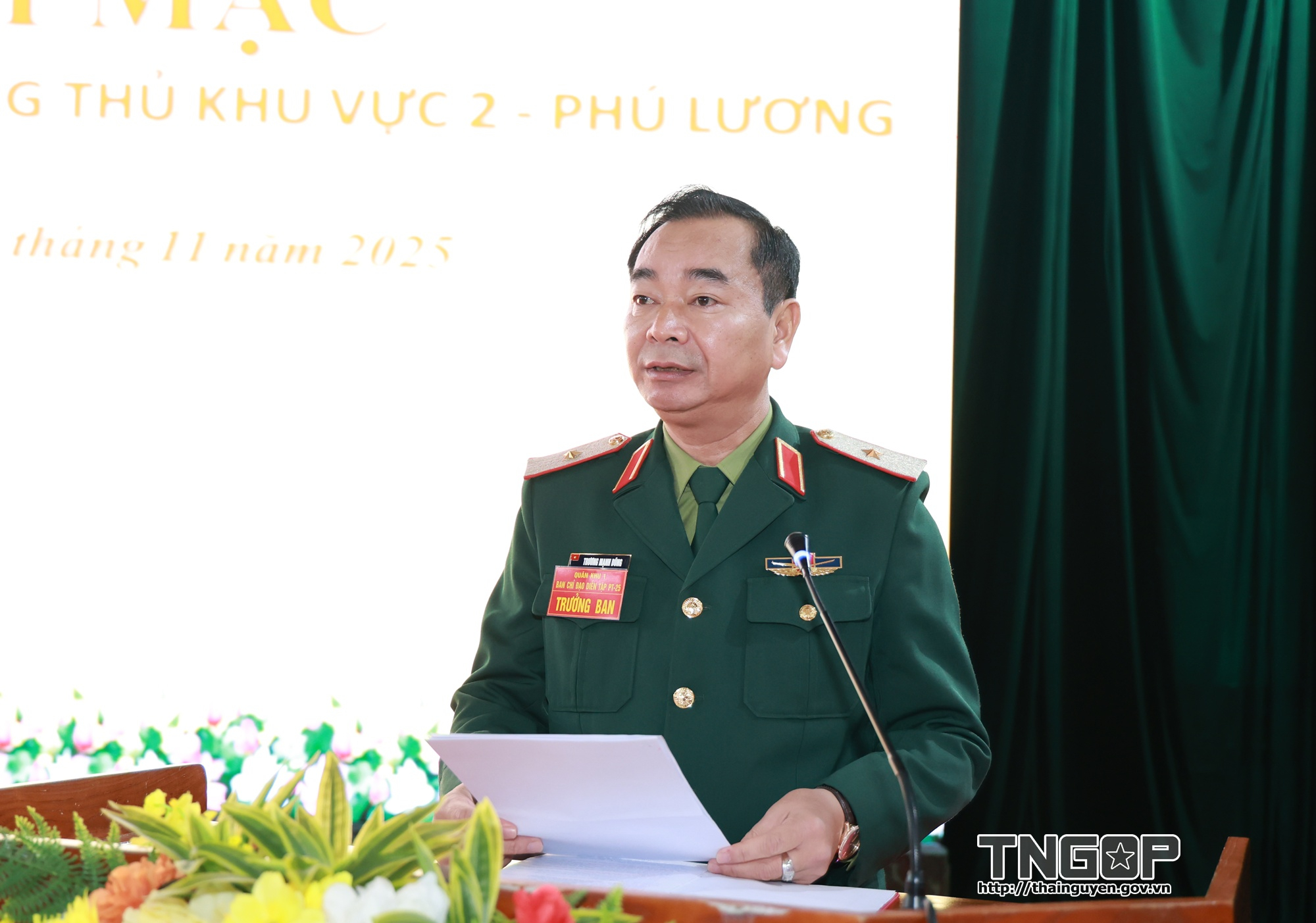 Thiếu tướng Trương Mạnh Dũng, Tư lệnh Quân khu 1 phát biểu chỉ đạo cuộc Diễn tập