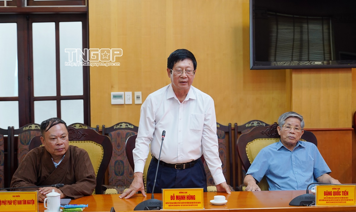 Thay mặt Đoàn công tác, đồng chí Đỗ Mạnh Hùng, nguyên Ủy viên BTV Tỉnh ủy, nguyên Phó Trưởng Đoàn đại biểu Quốc hội khóa XII tỉnh Thái Nguyên, nguyên Phó Chủ nhiệm Văn phòng Quốc hội, Chủ tịch Hội cán bộ Thái Nguyên tại Hà Nội chia sẻ sâu sắc với Đảng bộ, chính quyền và Nhân dân tỉnh Thái Nguyên trước những thiệt hại nặng nề do thiên tai gây ra. Đồng chí cho biết, ngay khi mưa lũ xảy ra, các hội viên của Hội cán bộ Thái Nguyên tại Hà Nội đã hướng về quê hương bằng nhiều hoạt động thiết thực, ý nghĩa như vận động quyên góp hàng hóa, nhu yếu phẩm và kinh phí hỗ trợ với tổng trị giá trên 1 tỷ đồng. Từ nguồn kinh phí này, các hội viên của Hội đã trực tiếp trao những phần quà đến người dân vùng lũ và thông qua Ủy ban MTTQ tỉnh, Hội mong muốn tiếp tục sẻ chia phần nào những khó khăn với người dân Thái Nguyên chịu ảnh hưởng bởi mưa lũ để sớm khôi phục sản xuất, đưa cuộc sống trở lại bình thường.