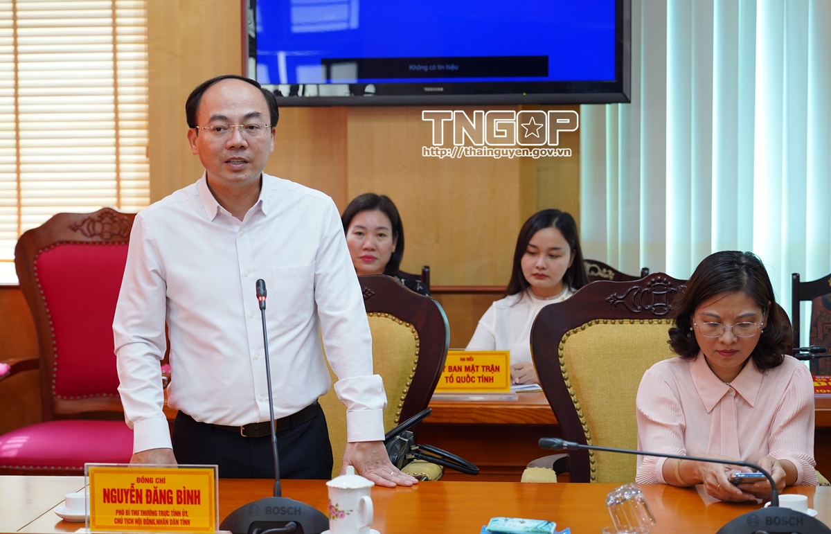 Thay mặt Đảng bộ, chính quyền và Nhân dân các dân tộc tỉnh Thái Nguyên, đồng chí Phó Bí thư Thường trực Tỉnh ủy, Chủ tịch HĐND tỉnh Thái Nguyên Nguyễn Đăng Bình cảm ơn sâu sắc trước tấm lòng và sự sẻ chia của Hội cán bộ Thái Nguyên tại Hà Nội. Đồng chí nhấn mạnh: Ngay sau khi mưa lũ xảy ra, tỉnh Thái Nguyên đã nhận được sự quan tâm của các đồng chí lãnh đạo Đảng, Nhà nước; các đồng chí nguyên lãnh đạo tỉnh Thái Nguyên qua các thời kỳ, những người con Thái Nguyên đang công tác, sinh sống ở trong và ngoài nước, sự chung tay của các tỉnh, thành phố, cộng đồng doanh nghiệp, doanh nhân. Đây là nguồn lực quý báu và là nguồn động viên tinh thần to lớn để Nhân dân tỉnh Thái Nguyên có thể khôi phục lại cuộc sống sinh hoạt và sản xuất trong thời gian sớm nhất. Đồng chí cũng chia sẻ: Ngay sau khi mưa lũ kết thúc, song song với công tác khắc phục, tỉnh đã và đang thực hiện các giải pháp phòng, chống thiên tai mang tính chiến lược, lâu dài, đồng thời kiên trì, quyết tâm thực hiện các mục tiêu phát triển. Đồng chí mong muốn các đồng chí nguyên lãnh đạo các cơ quan Trung ương, nguyên lãnh đạo tỉnh Thái Nguyên qua các thời kỳ đang sinh hoạt tại Hội cán bộ Thái Nguyên tại Hà Nội sẽ luôn đồng hành cùng tỉnh trong thực hiện các mục tiêu phát triển trước mắt và lâu dài.