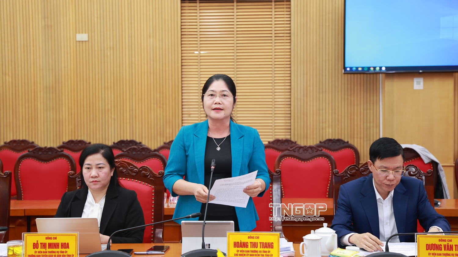 Đồng chí Hoàng Thu Trang, Ủy viên Ban Thường vụ Tỉnh ủy, Chủ nhiệm Ủy ban kiểm tra Tỉnh ủy cho ý kiến vào một số nội dung trình tại Hội nghị