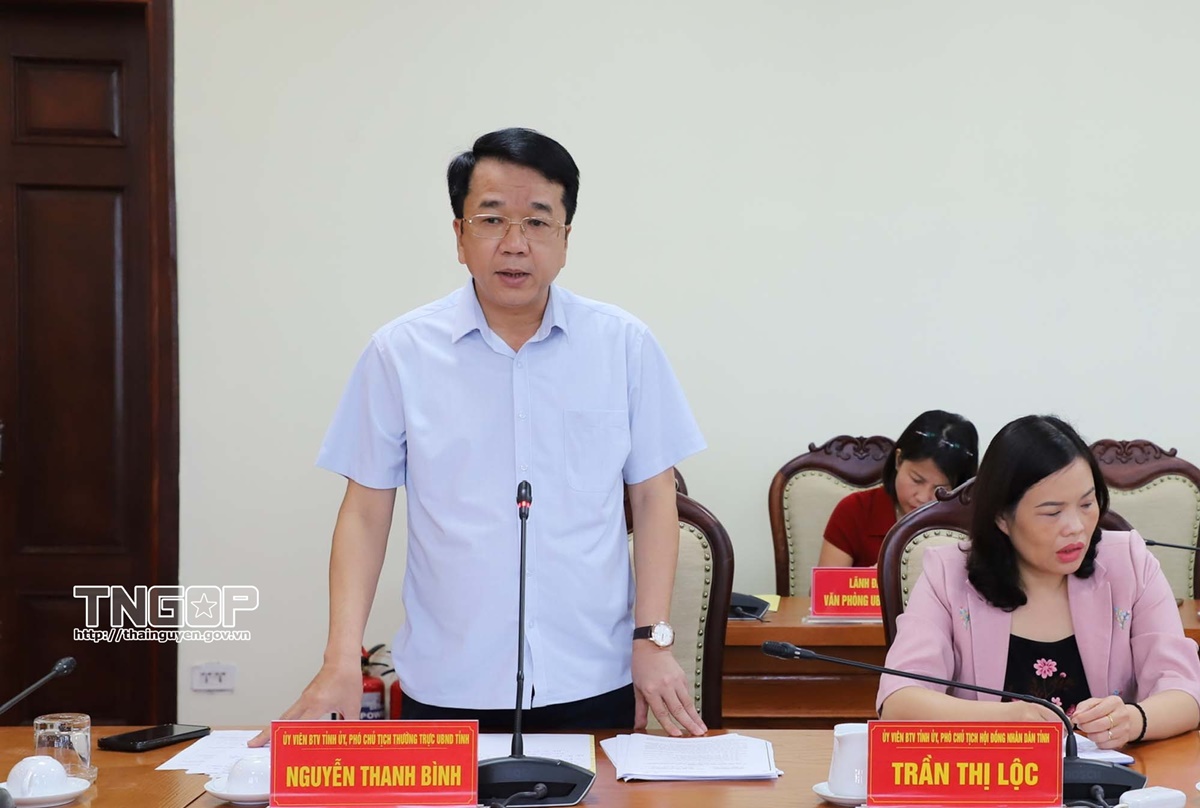 Đồng chí Nguyễn Thanh Bình, Ủy viên Ban Thường vụ Tỉnh ủy, Phó Chủ tịch Thường trực UBND tỉnh phát biểu tại Hội nghị