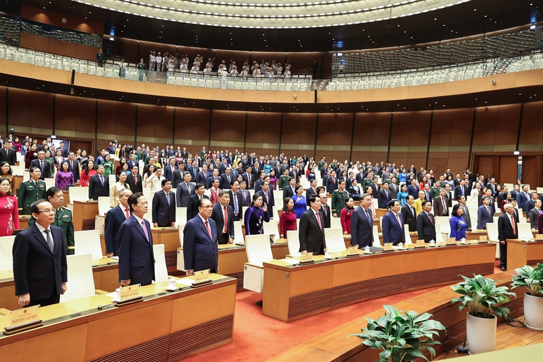 "Nhiệm vụ, yêu cầu của đất nước trong giai đoạn phát triển mới đòi hỏi toàn Đảng, toàn dân và toàn quân ta phát huy cao độ tinh thần yêu nước, khát vọng phát triển, sức mạnh của nhân dân, của khối đại đoàn kết toàn dân tộc; đổi mới mạnh mẽ tư duy; thực hiện đồng bộ, hiệu quả các quyết sách chiến lược. Quốc hội, các cơ quan của Quốc hội, các vị đại biểu Quốc hội cố gắng, nỗ lực, quyết tâm cao hơn nữa, dám nói, dám làm, dám chịu trách nhiệm vì nhân dân, vì đất nước, góp phần quan trọng để đất nước ta bước vào kỷ nguyên mới - kỷ nguyên vươn mình của dân tộc, vì một nước Việt Nam giàu mạnh, phồn vinh, văn minh, hạnh phúc", Chủ tịch Quốc hội Trần Thanh Mẫn phát biểu.