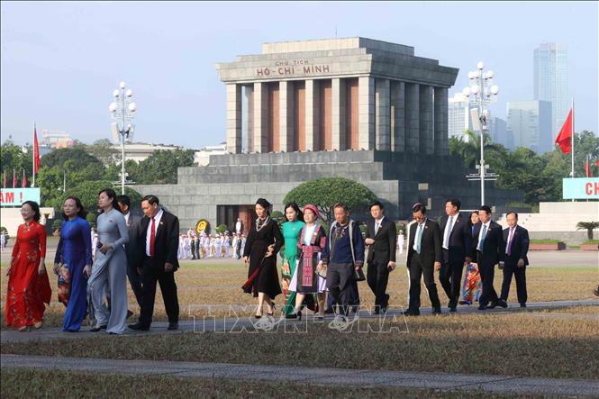 Các đồng chí lãnh đạo Đảng, Nhà nước cùng đại biểu Quốc hội đến đặt vòng hoa và vào Lăng viếng Chủ tịch Hồ Chí Minh.