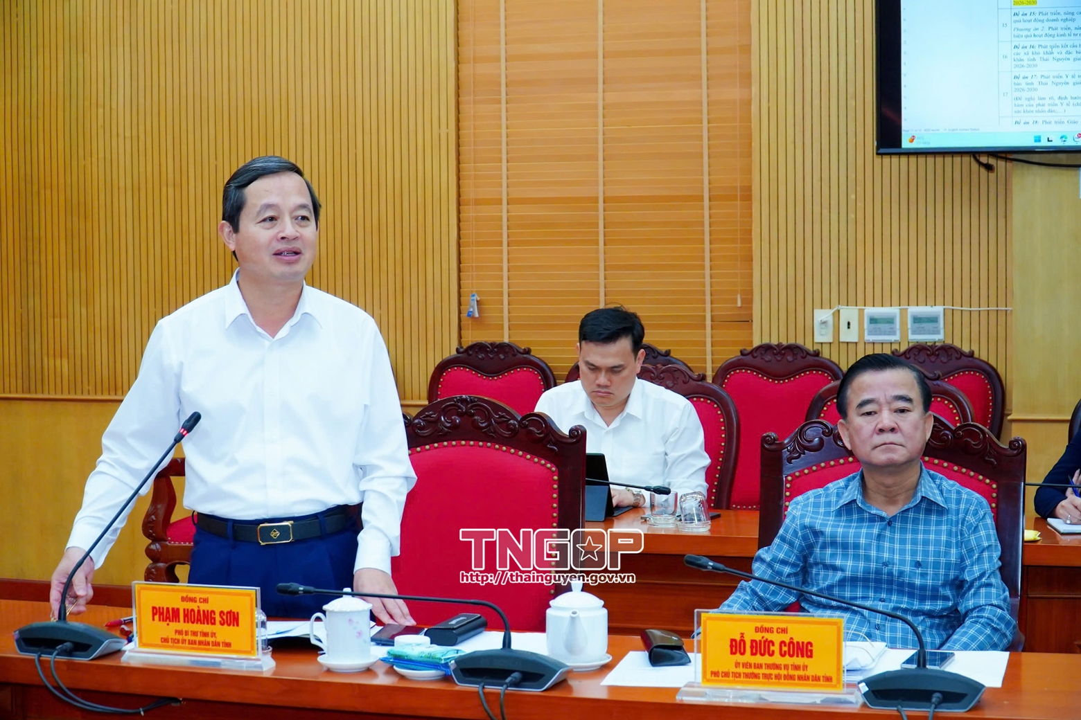 Đồng chí Phạm Hoàng Sơn, Phó Bí thư Tỉnh ủy, Chủ tịch UBND tỉnh phát biểu tại Hội nghị