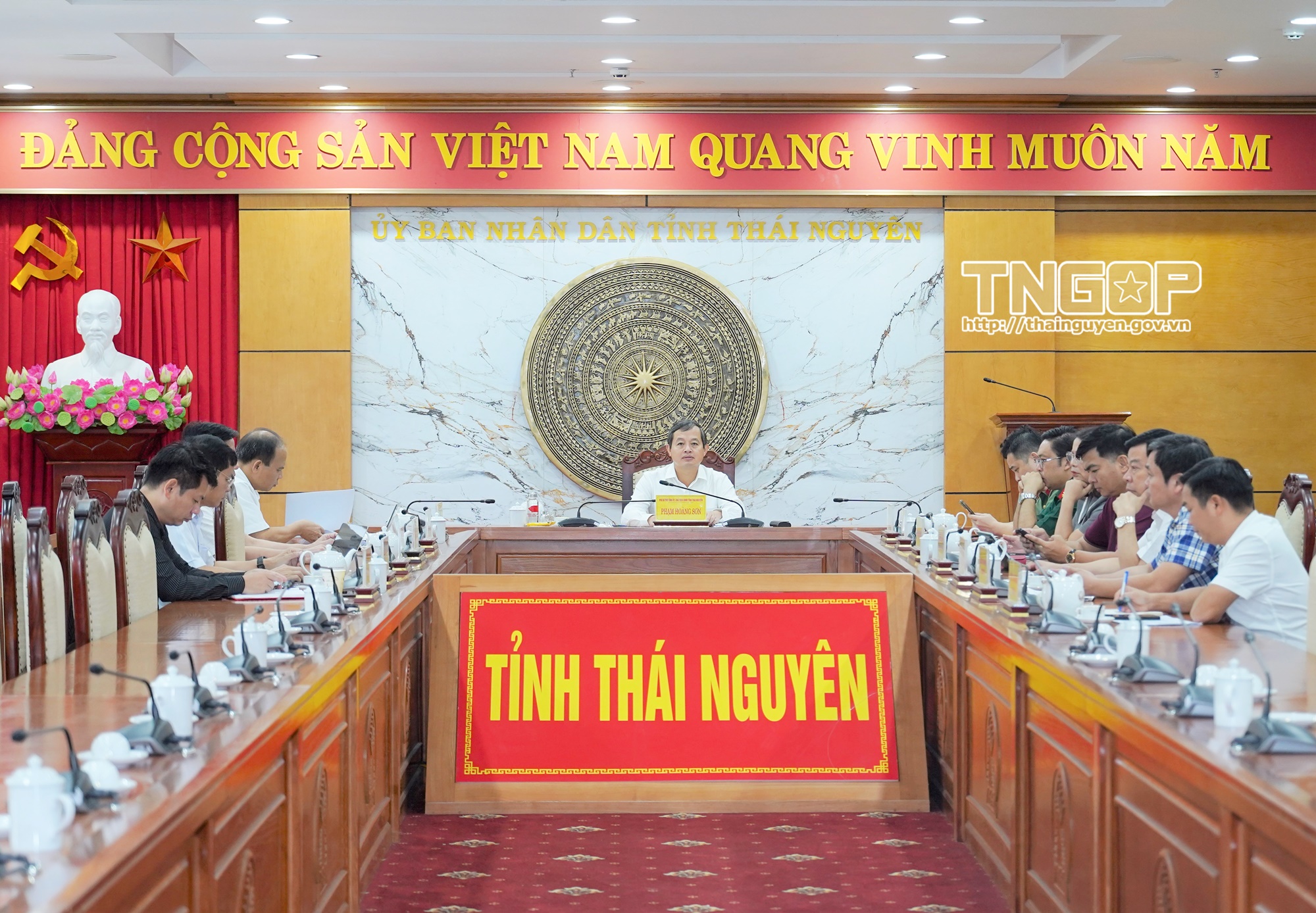 Đồng chí Phạm Hoàng Sơn, Phó Bí thư Tỉnh ủy, Chủ tịch UBND tỉnh chủ trì tại điểm cầu tỉnh Thái Nguyên