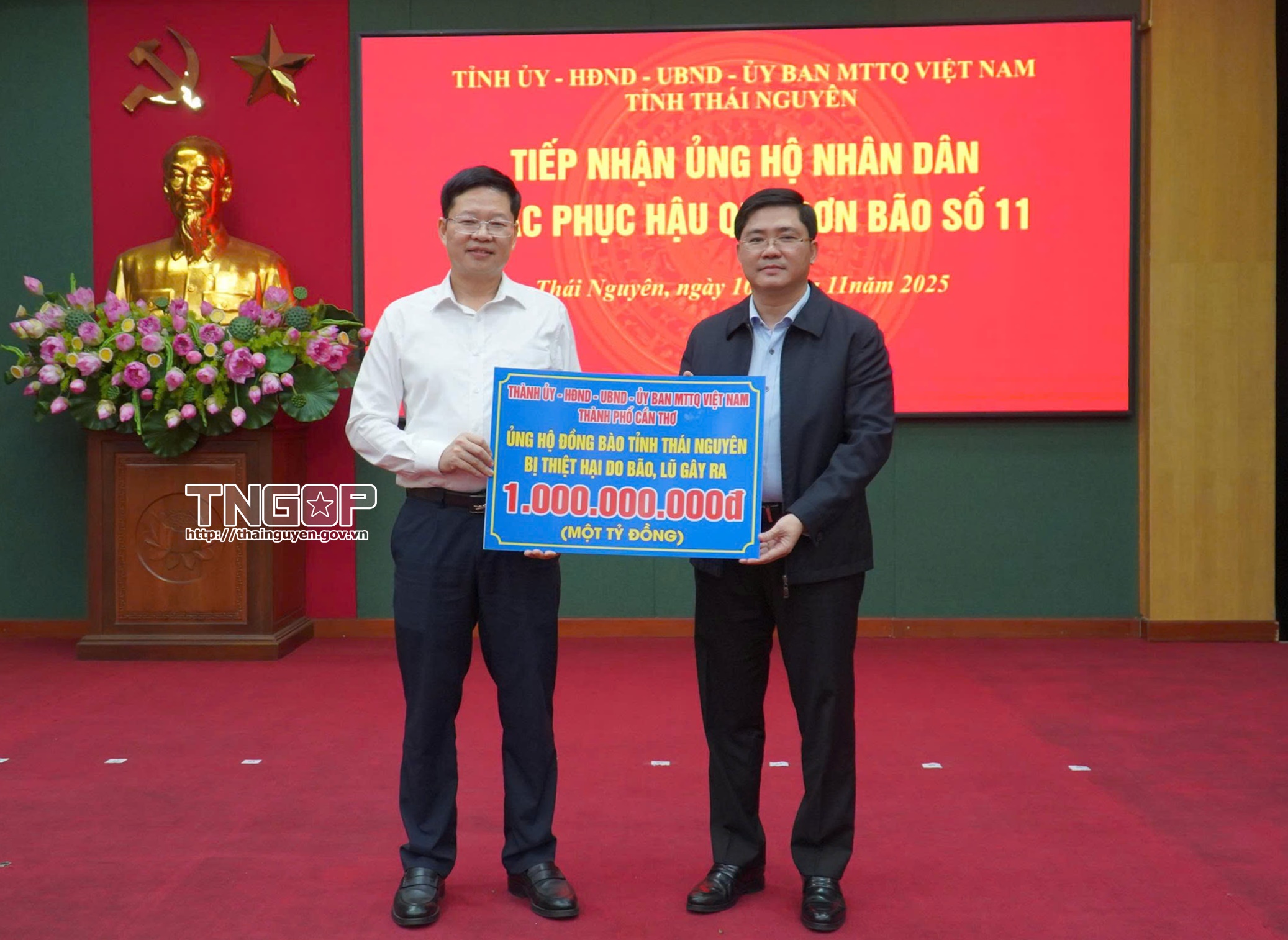 Bày tỏ những chia sẻ sâu sắc trước thiệt hại nặng nề do mưa lũ lịch sử từ cơn bão số 11 gây ra trên địa bàn tỉnh Thái Nguyên những ngày đầu tháng 10 vừa qua, Đoàn công tác của thành phố Cần Thơ cũng đánh giá cao sự phục hồi nhanh chóng của Thái Nguyên sau mưa lũ, điều đó cho thấy công tác lãnh đạo, chỉ đạo quyết liệt của các đồng chí lãnh đạo tỉnh cùng sự vào cuộc của cả hệ thống chính trị và sự đồng lòng của Nhân dân. Đoàn công tác cũng mong muốn, tỉnh Thái Nguyên sẽ sớm khôi phục hoàn toàn, sớm ổn định và phát triển kinh tế xã hội, thành phố Cần Thơ luôn sẵn sàng sẻ chia và mong muốn được đồng hành cùng Thái Nguyên trong hành trình phát triển.