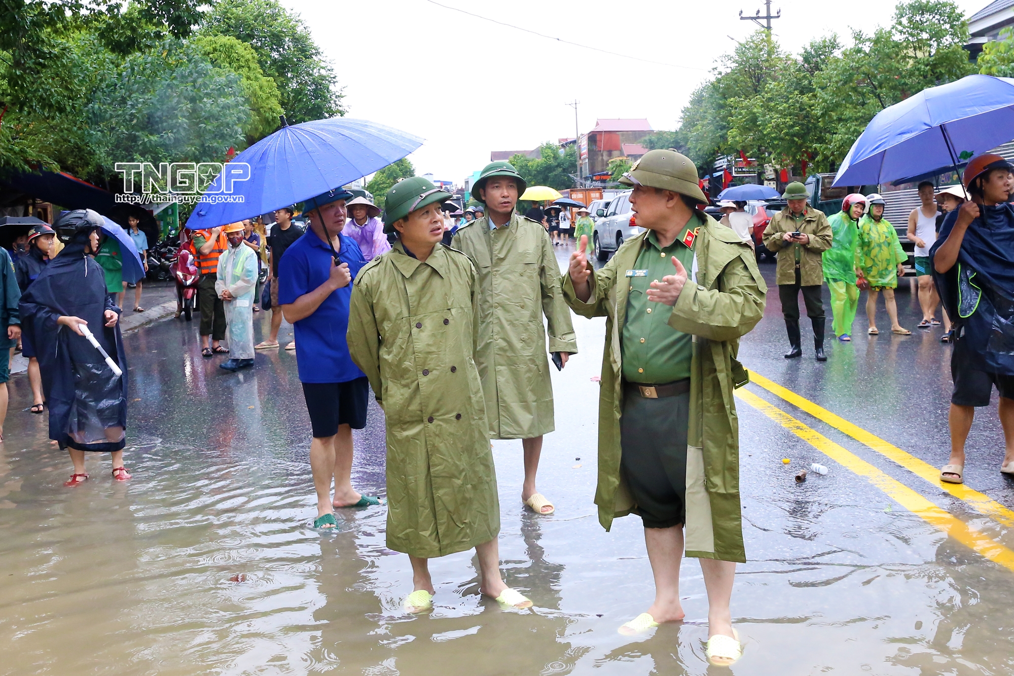 Đồng chí Phạm Hoàng Sơn, Phó Bí thư Tỉnh ủy, Chủ tịch UBND tỉnh, Trưởng Ban Chỉ huy Phòng thủ dân sự tỉnh chỉ đạo công tác phòng chống lũ lụt tại phường Quan Triều